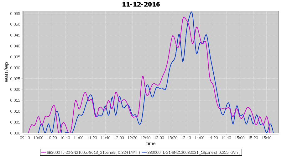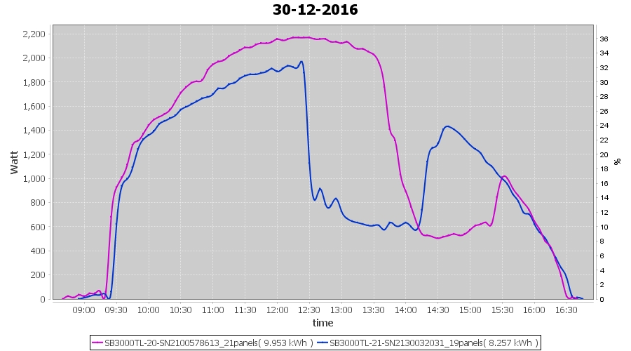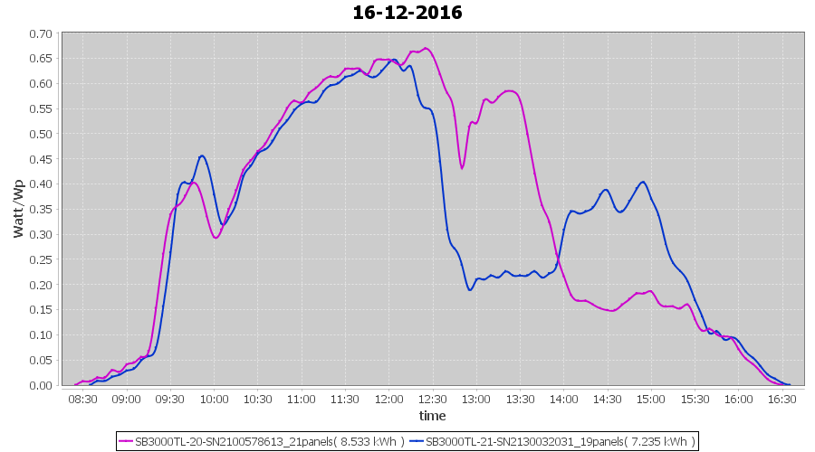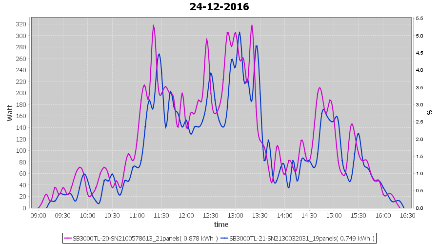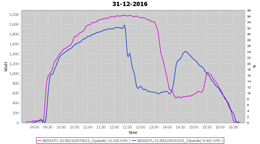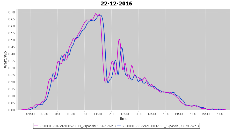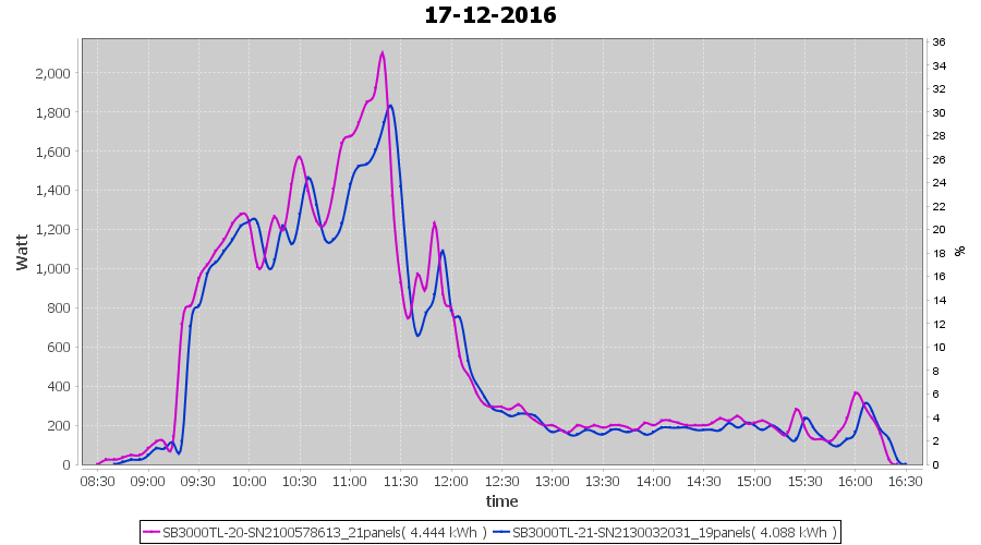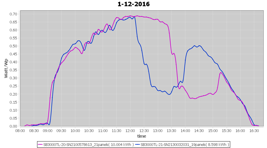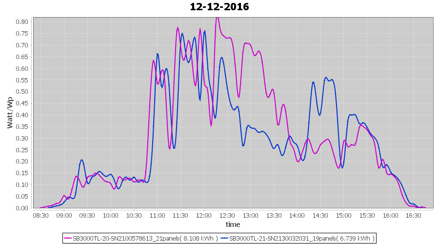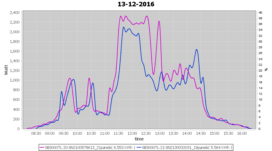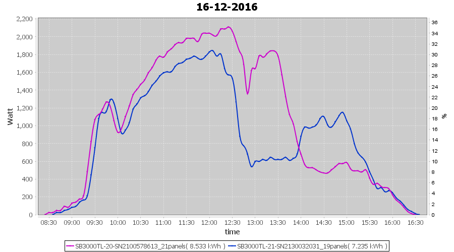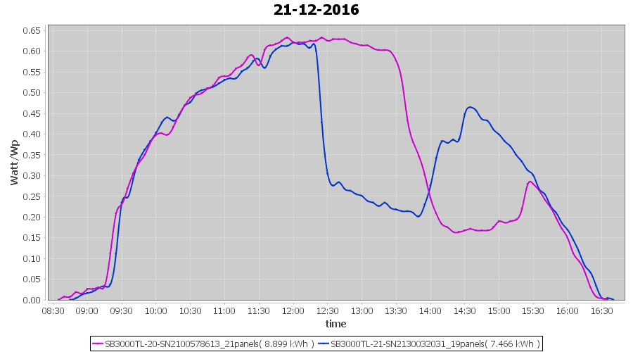 | 13-12-2016 | kWh | Sum | W/Wp | 12.117 | 6000 | 2.0 | 5.604 | € 4.31 | 3.2 |