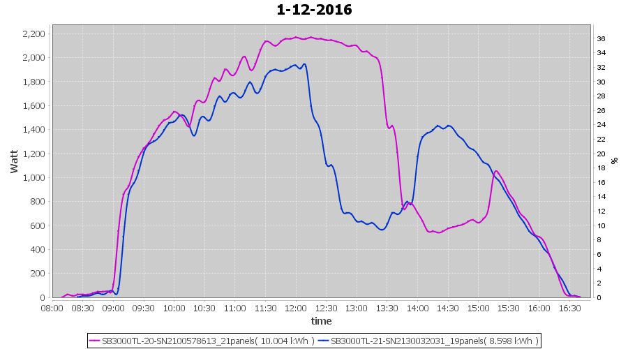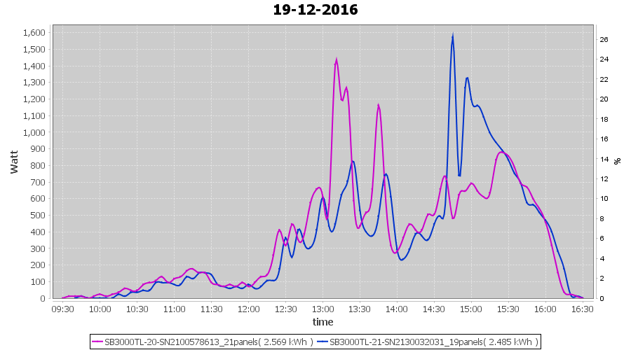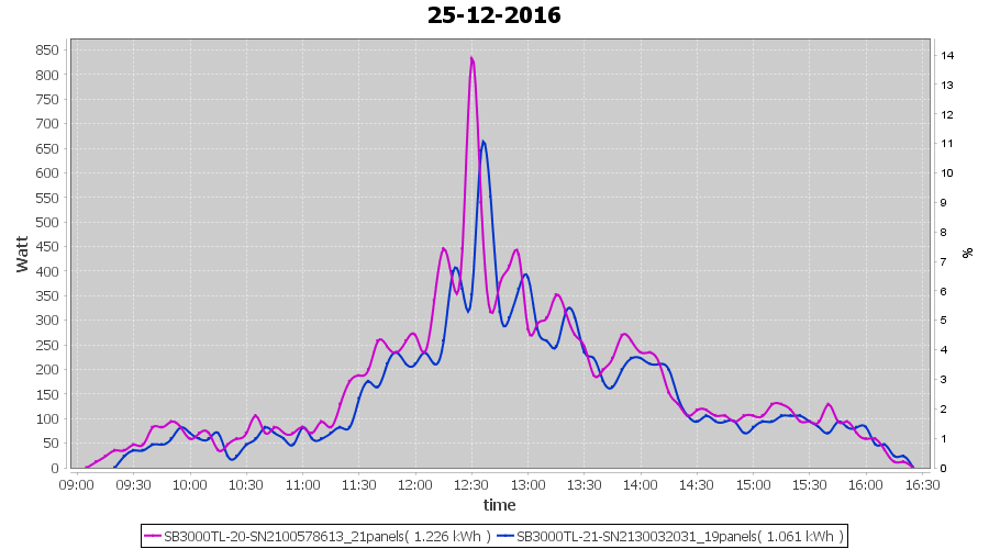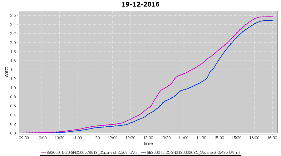 | 19-12-2016 | kWh | Sum | W/Wp | 5.054 | 6000 | 0.8 | 2.337 | € 1.80 | 1.3 |