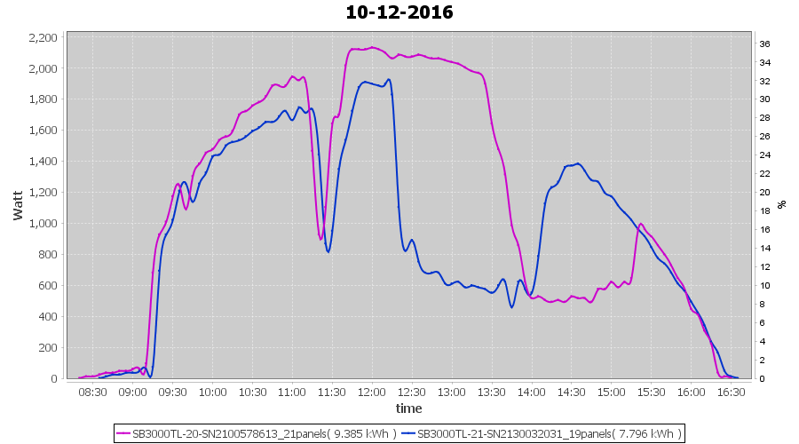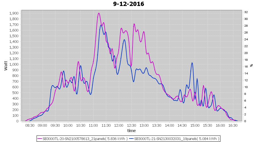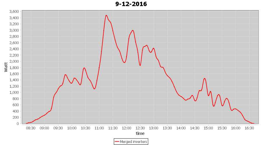 | 9-12-2016 | kWh | Sum | W/Wp | 10.920 | 6000 | 1.8 | 5.050 | € 3.88 | 2.9 |