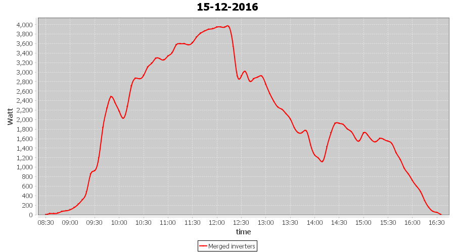 | 16-12-2016 | kWh | Sum | W/Wp | 15.768 | 6000 | 2.6 | 7.293 | € 5.61 | 4.2 |