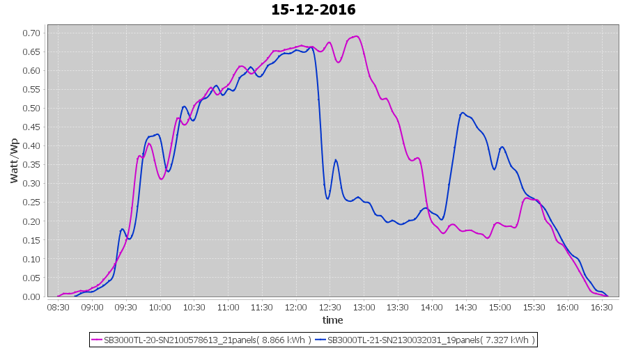 | 15-12-2016 | kWh | Sum | W/Wp | 16.193 | 6000 | 2.7 | 7.489 | € 5.76 | 4.3 |