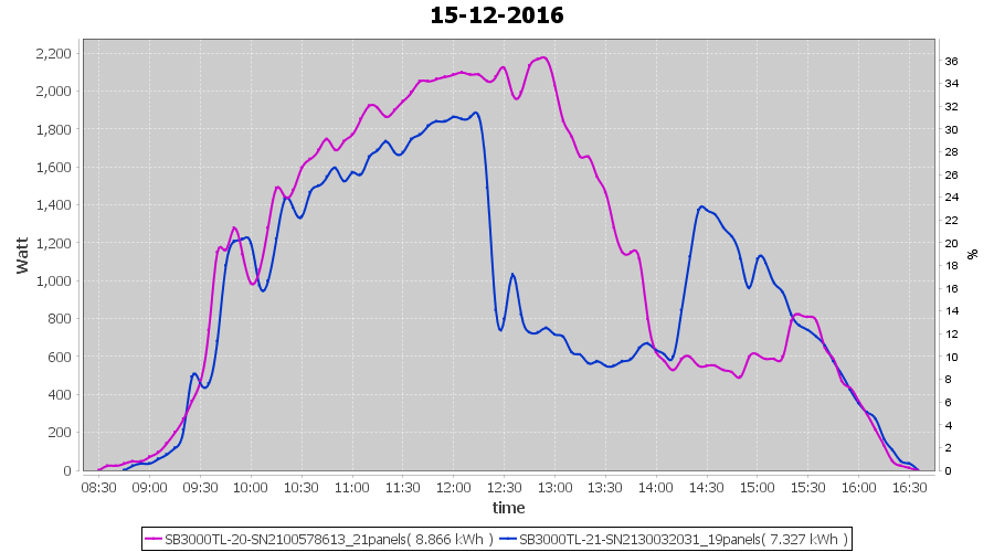 | 8-12-2016 | kWh | Sum | W/Wp | 15.476 | 6000 | 2.6 | 7.158 | € 5.50 | 4.1 |