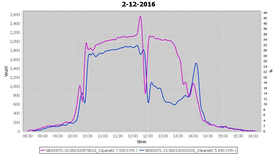 | 2-12-2016 | kWh | Sum | W/Wp | 13.170 | 6000 | 2.2 | 6.091 | € 4.68 | 3.5 |