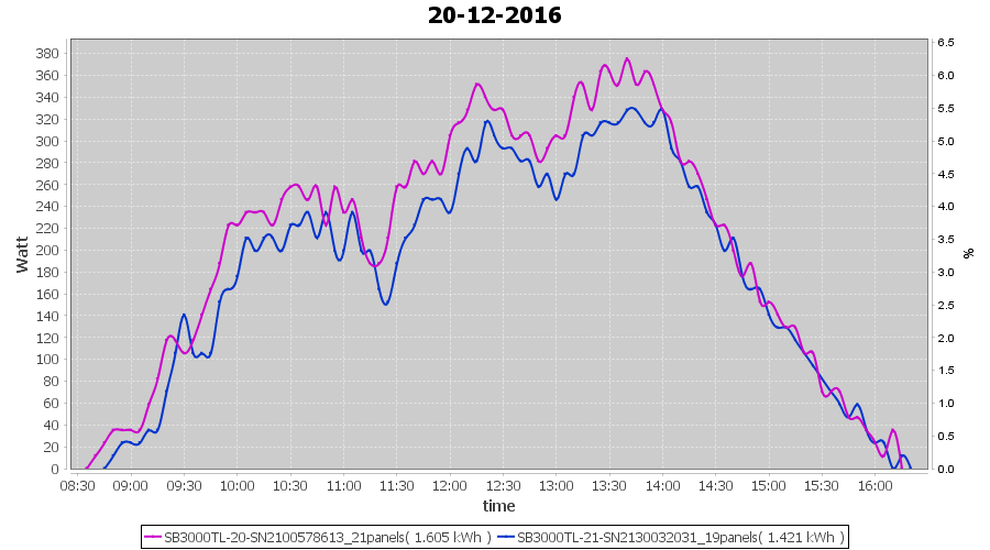 | 20-12-2016 | kWh | Sum | W/Wp | 3.026 | 6000 | 0.5 | 1.400 | € 1.08 | 0.8 |