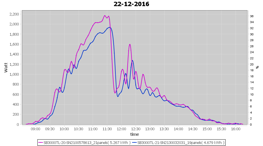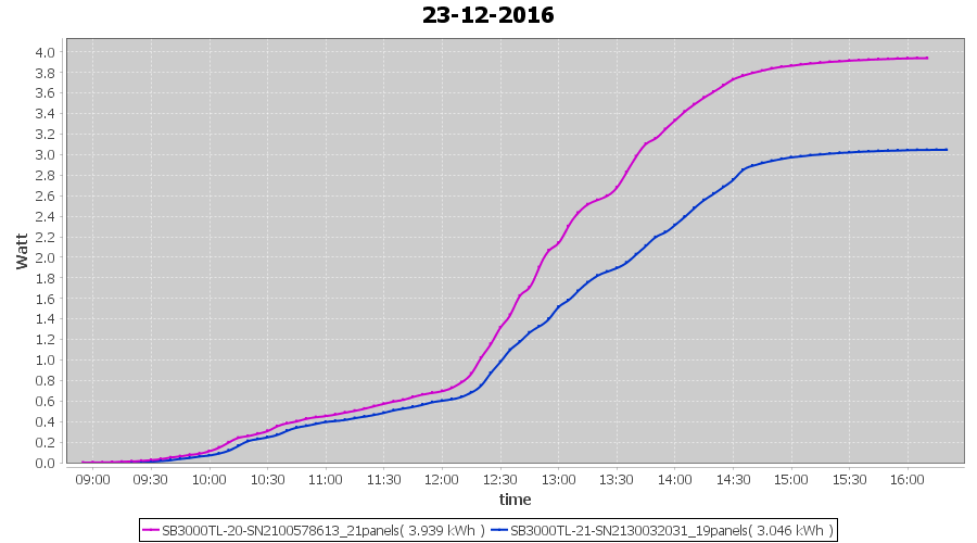 | 22-12-2016 | kWh | Sum | W/Wp | 9.946 | 6000 | 1.7 | 4.600 | € 3.54 | 2.6 |