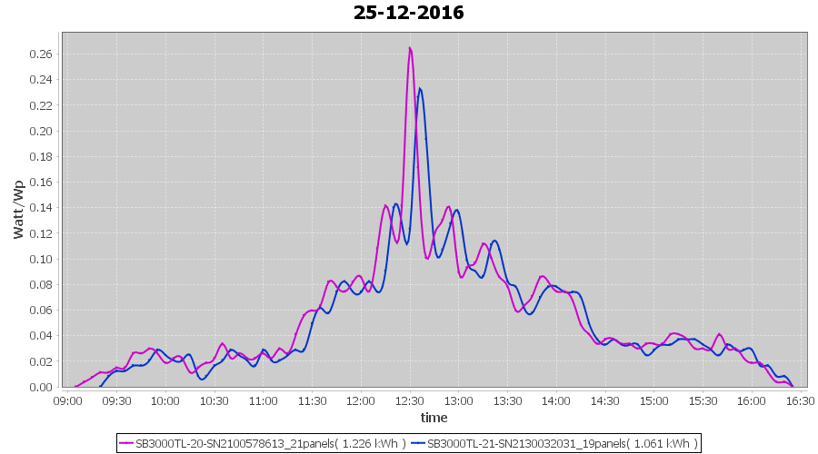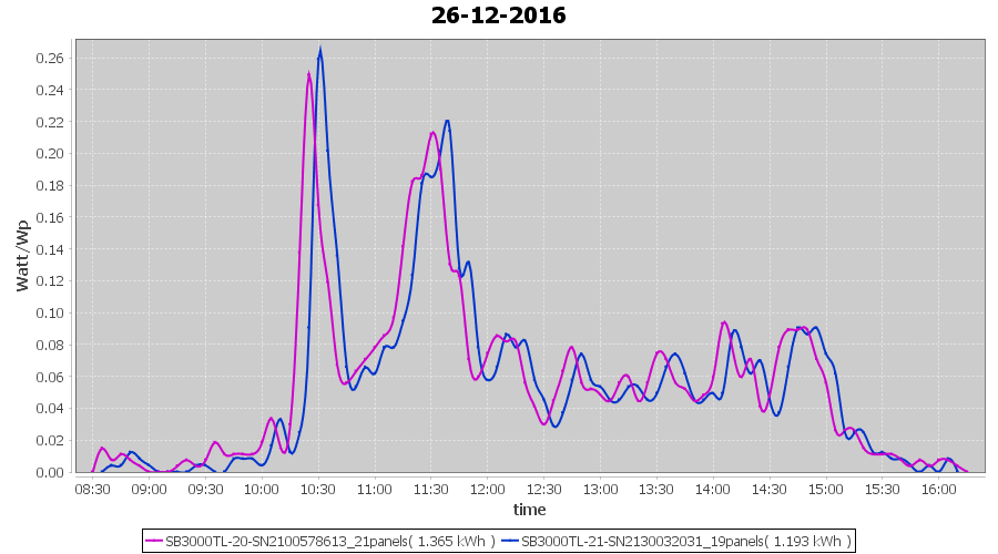| 26-12-2016 | kWh | Sum | W/Wp | 2.558 | 6000 | 0.4 | 1.183 | € 0.91 | 0.7 |