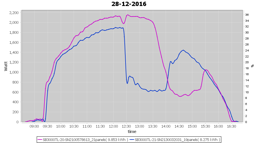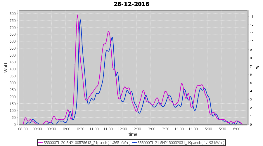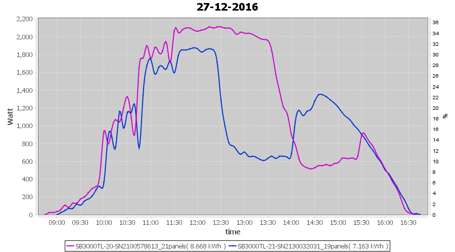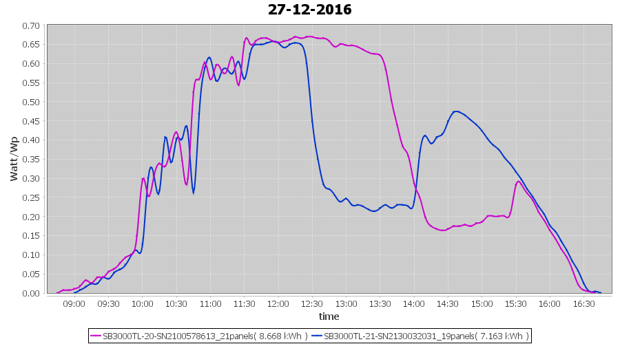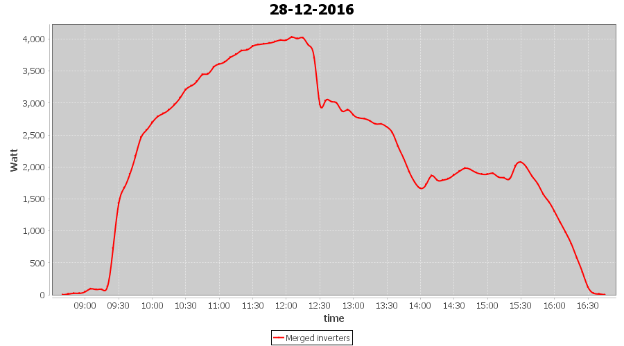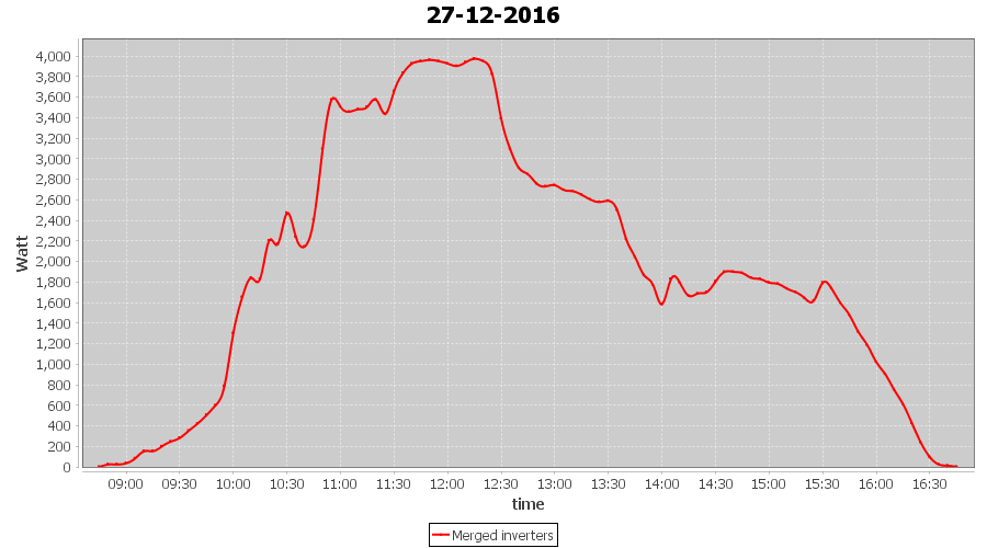 | 27-12-2016 | kWh | Sum | W/Wp | 15.831 | 6000 | 2.6 | 7.322 | € 5.63 | 4.2 |
