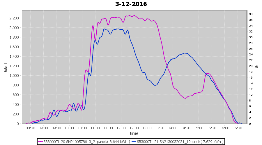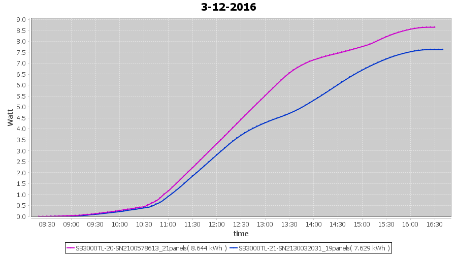 | 3-12-2016 | kWh | Sum | W/Wp | 16.273 | 6000 | 2.7 | 7.526 | € 5.79 | 4.3 |