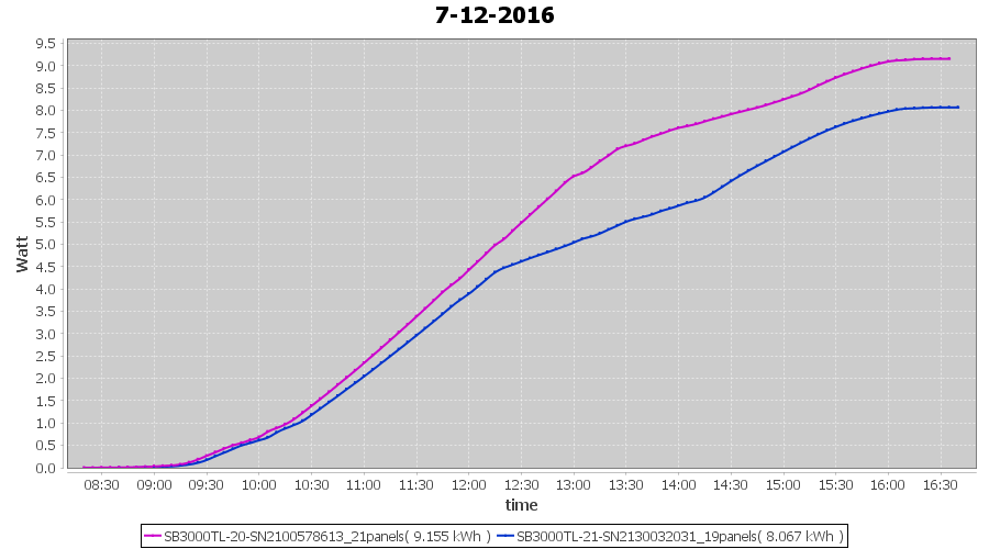 | 7-12-2016 | kWh | Sum | W/Wp | 17.222 | 6000 | 2.9 | 7.965 | € 6.12 | 4.6 |