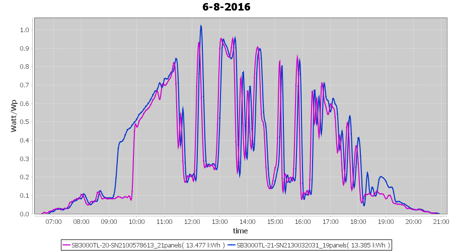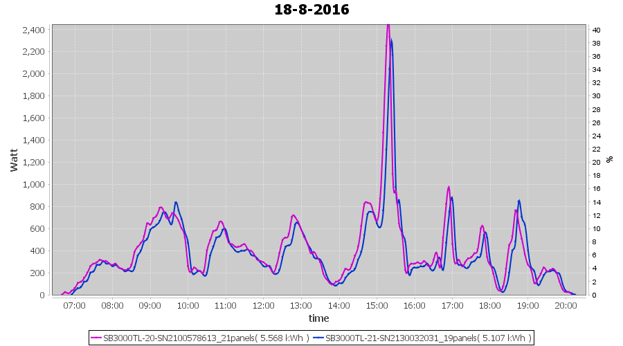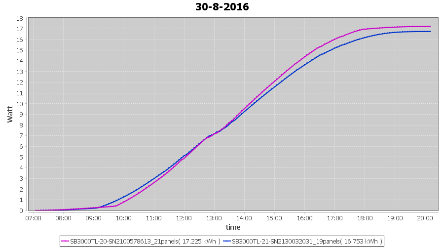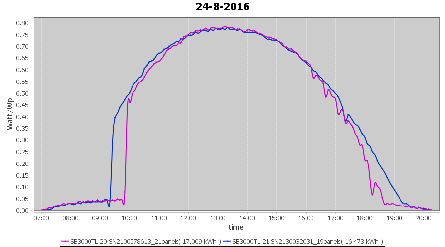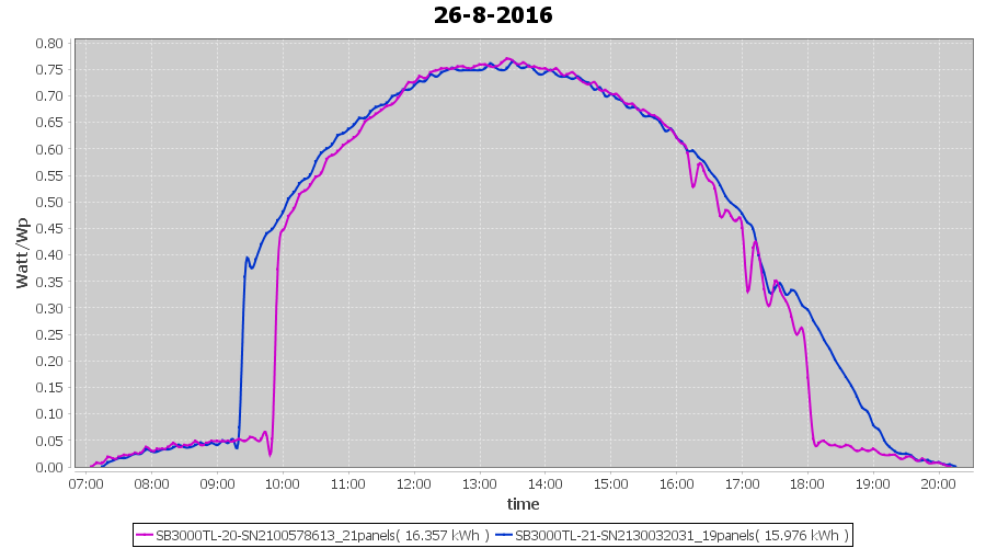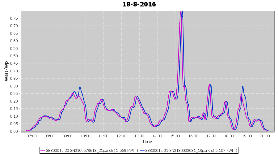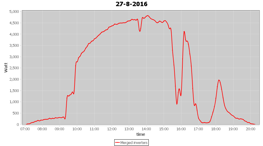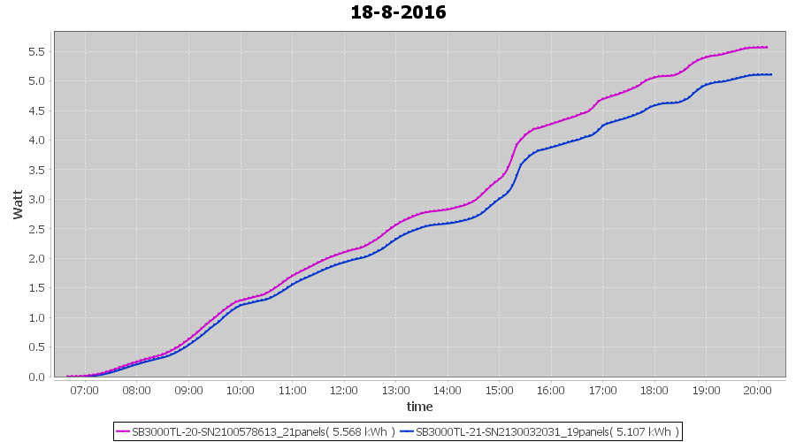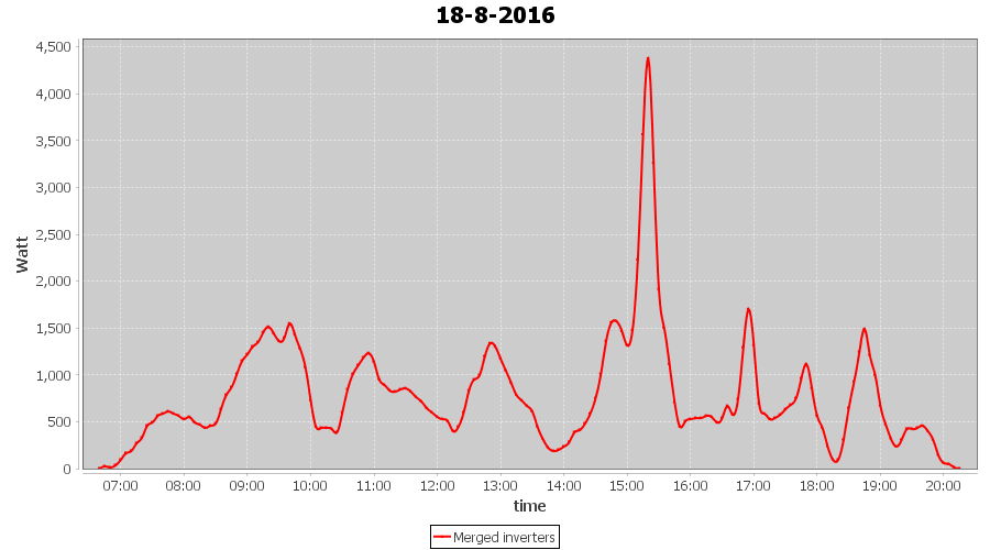 | 18-8-2016 | kWh | Sum | W/Wp | 10.675 | 6000 | 1.8 | 4.937 | € 3.80 | 1.3 |