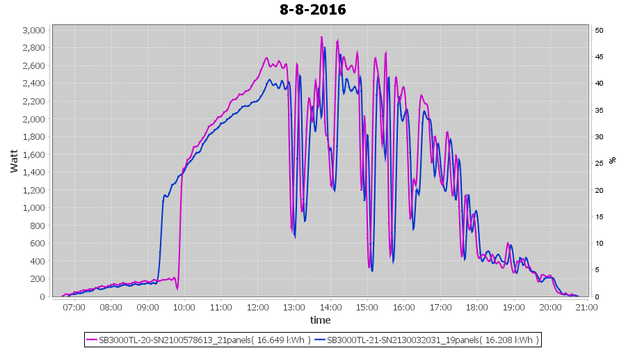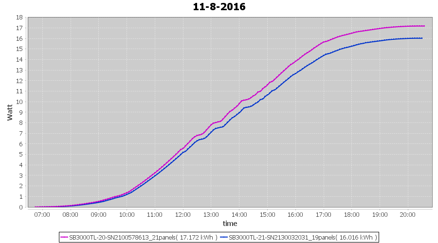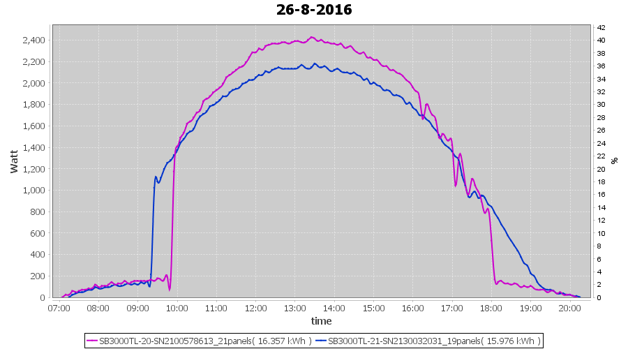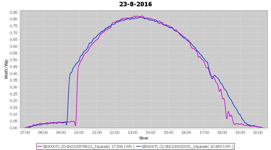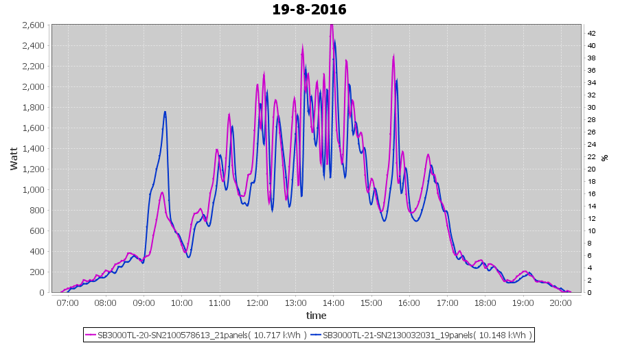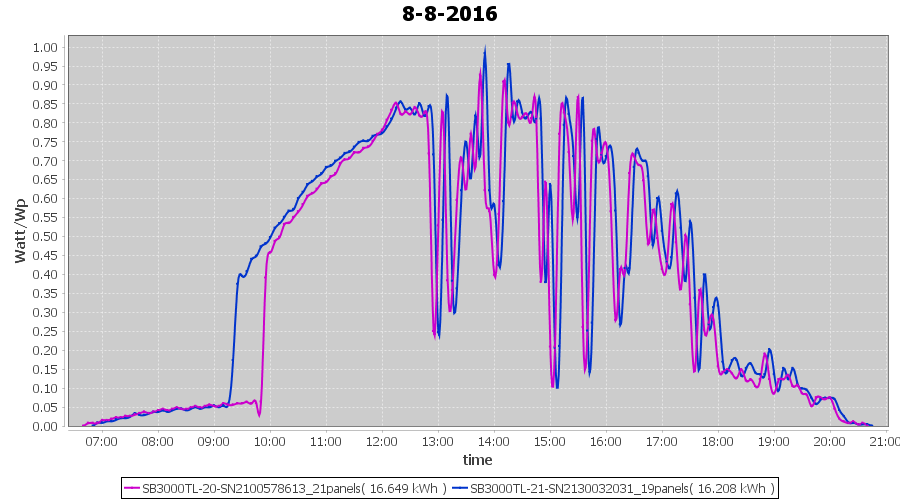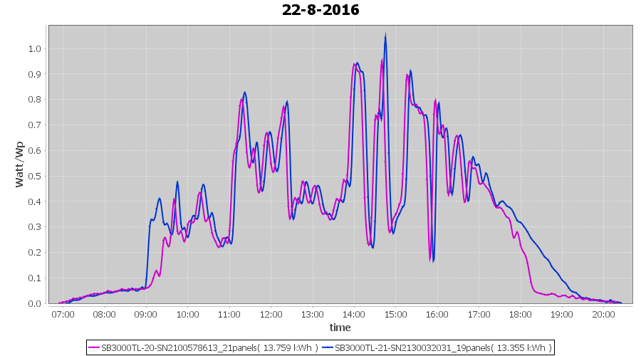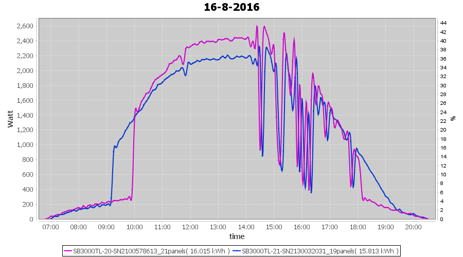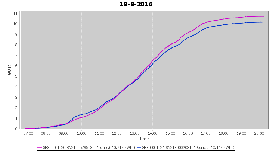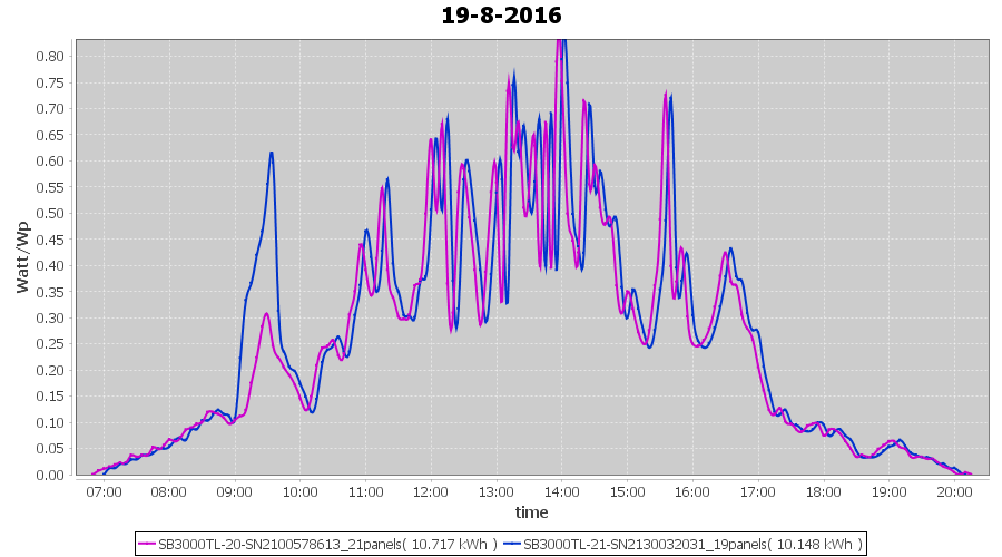 | 18-8-2016 | kWh | Sum | W/Wp | 10.675 | 6000 | 1.8 | 4.937 | € 3.80 | 1.3 |