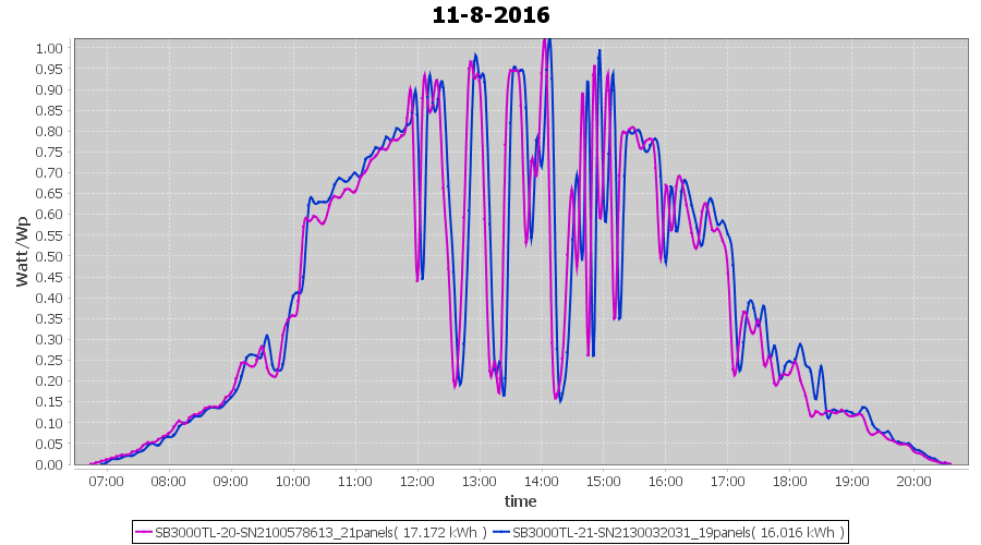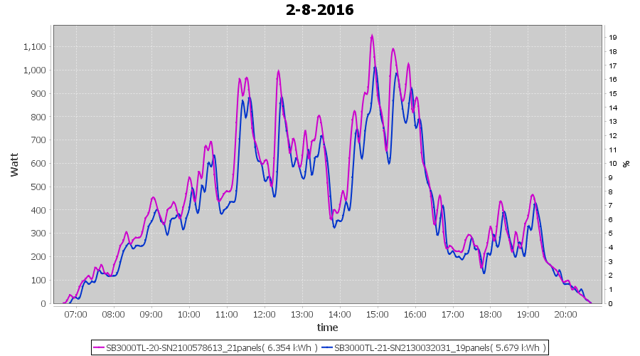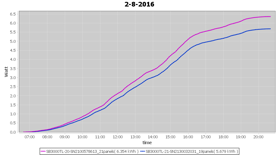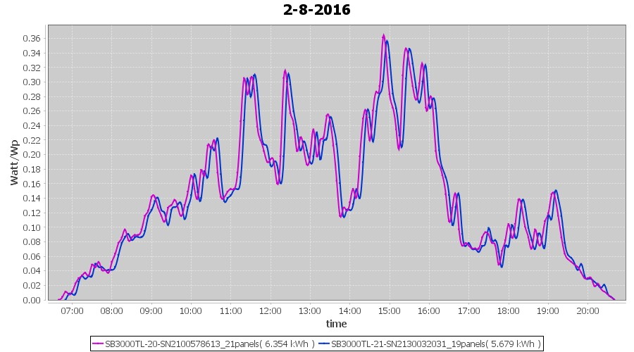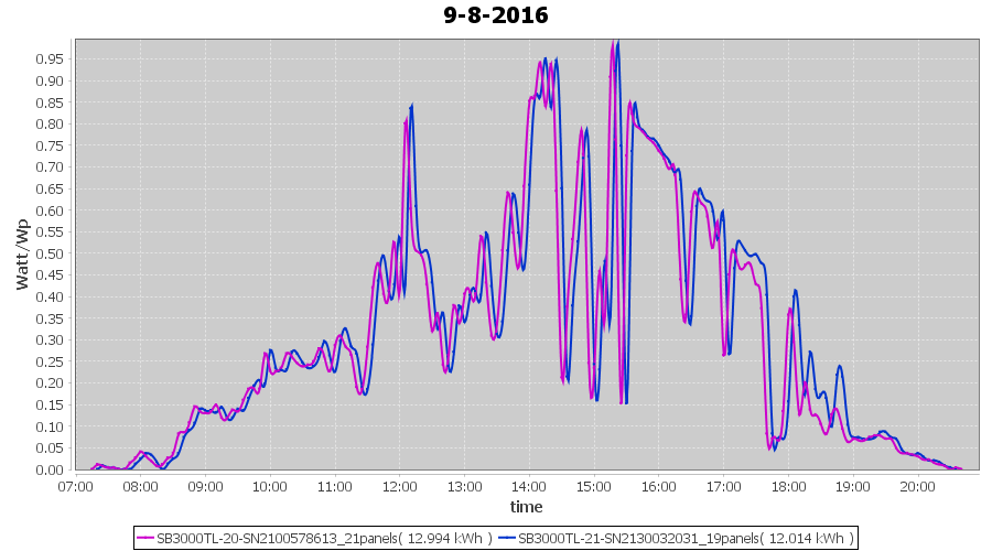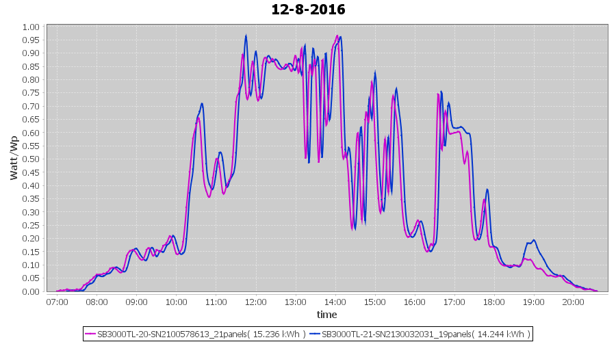 | 2-8-2016 | kWh | Sum | W/Wp | 12.033 | 6000 | 2.0 | 5.565 | € 4.28 | 1.4 |