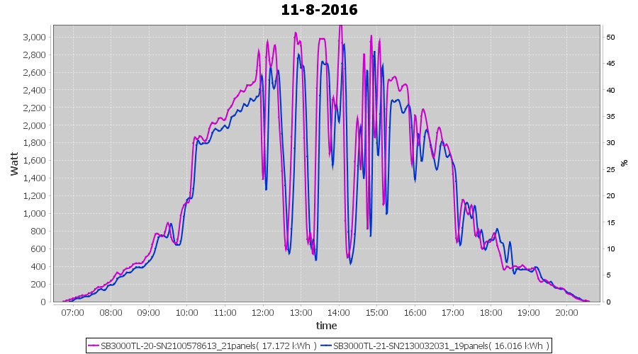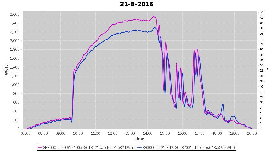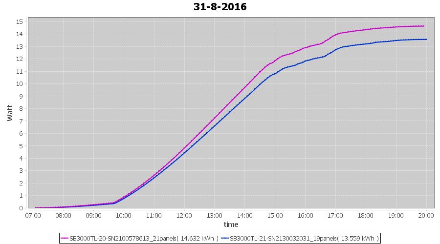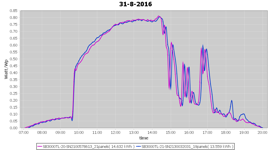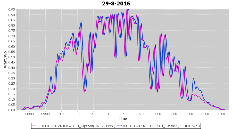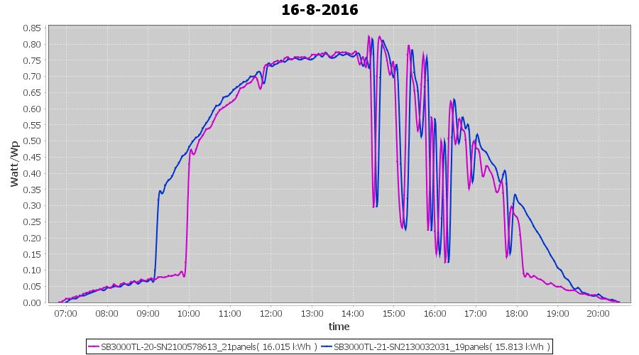 | 16-8-2016 | kWh | Sum | W/Wp | 31.828 | 6000 | 5.3 | 14.720 | € 11.32 | 3.8 |