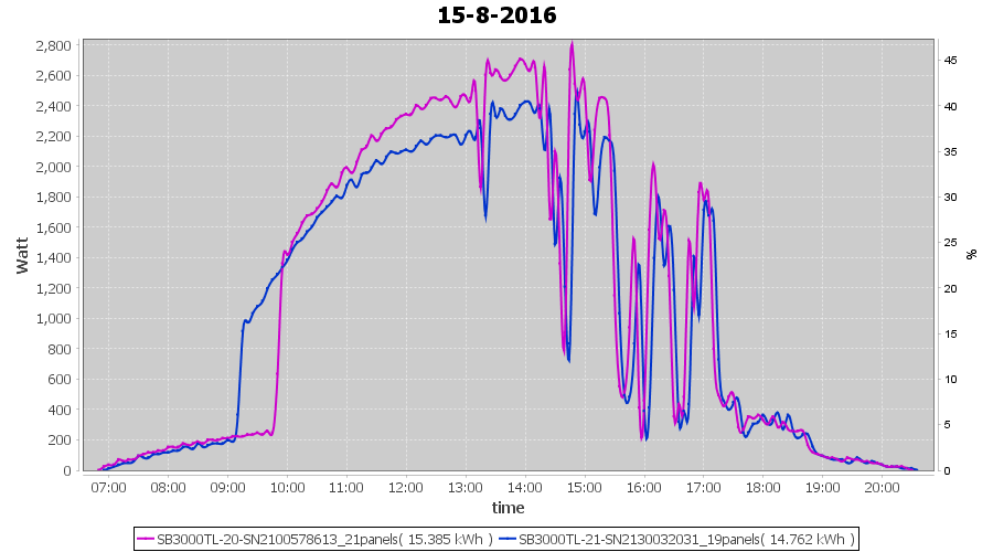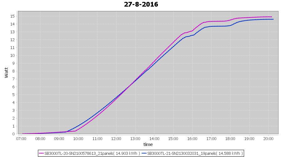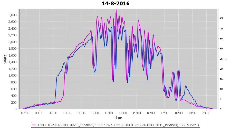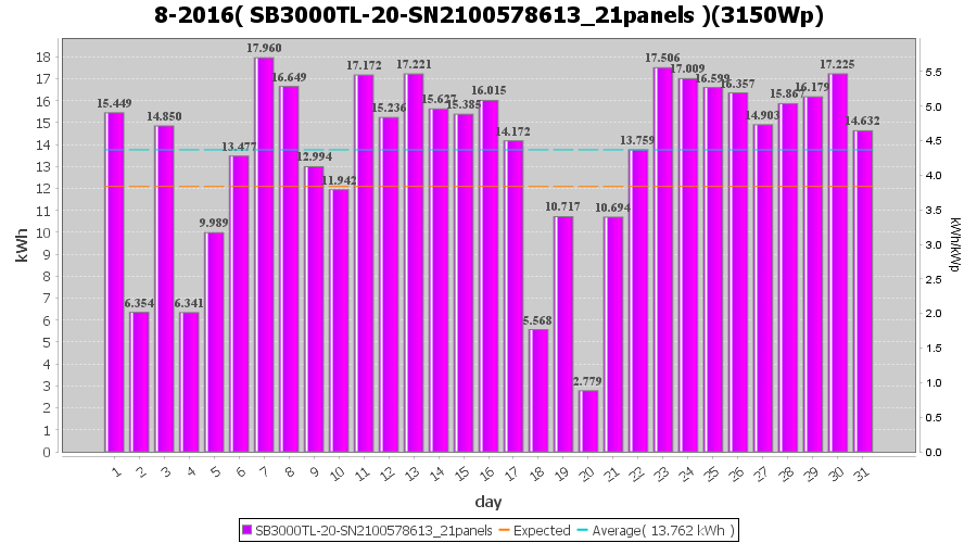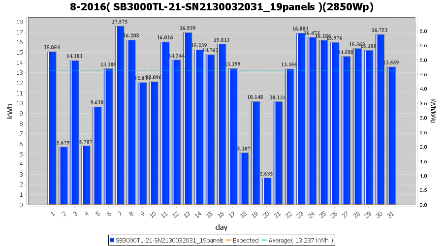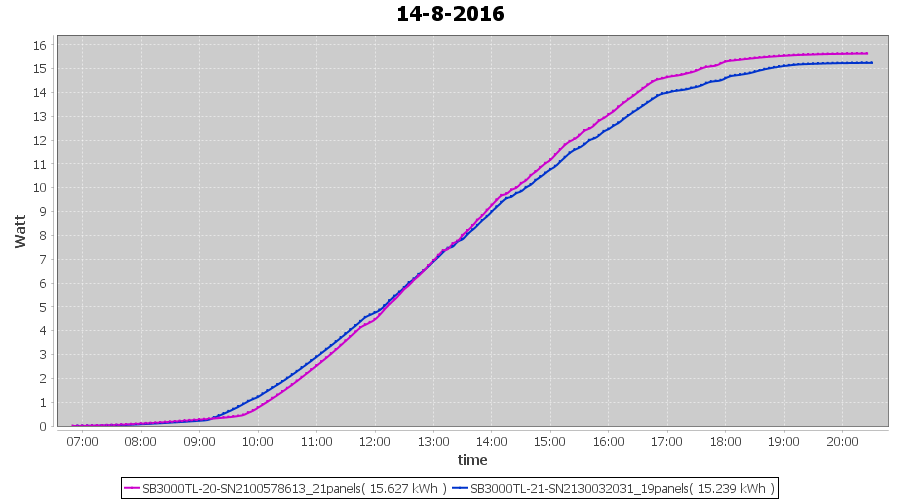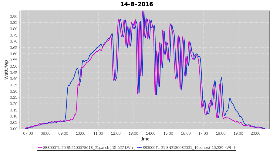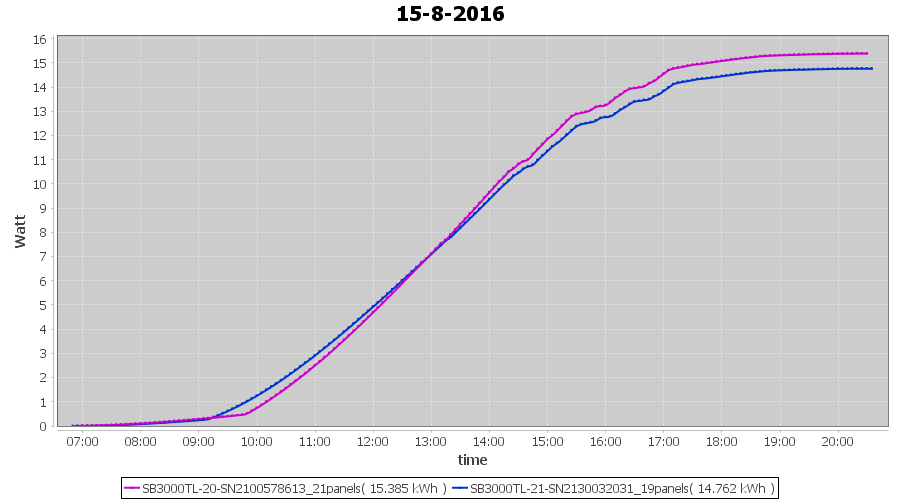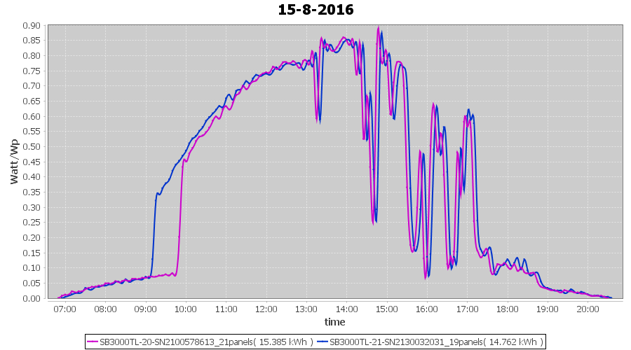 | 15-8-2016 | kWh | Sum | W/Wp | 30.147 | 6000 | 5.0 | 13.943 | € 10.72 | 3.6 |