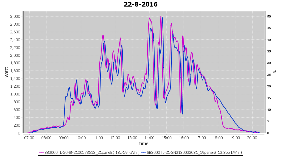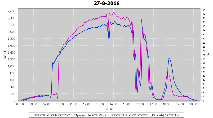 | 22-8-2016 | kWh | Sum | W/Wp | 27.114 | 6000 | 4.5 | 12.540 | € 9.64 | 3.2 |