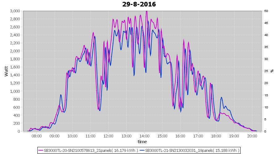 | 29-8-2016 | kWh | Sum | W/Wp | 31.367 | 6000 | 5.2 | 14.507 | € 11.15 | 3.7 |