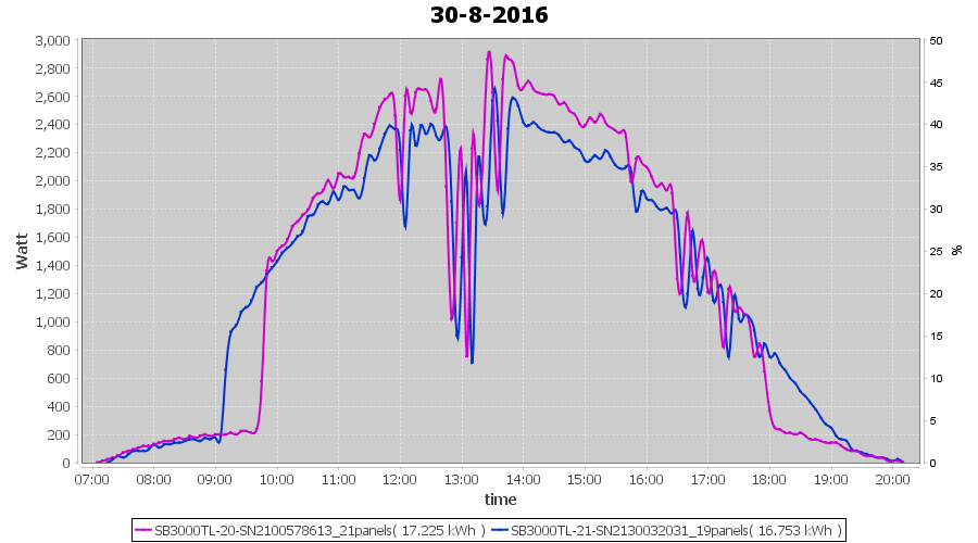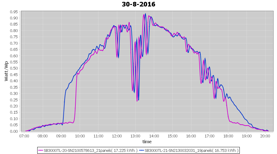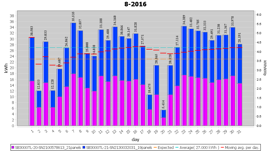 | 30-8-2016 | kWh | Sum | W/Wp | 33.978 | 6000 | 5.7 | 15.715 | € 12.08 | 4.1 |