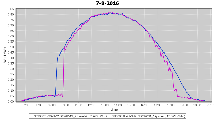 | 7-8-2016 | kWh | Sum | W/Wp | 35.535 | 6000 | 5.9 | 16.435 | € 12.64 | 4.2 |