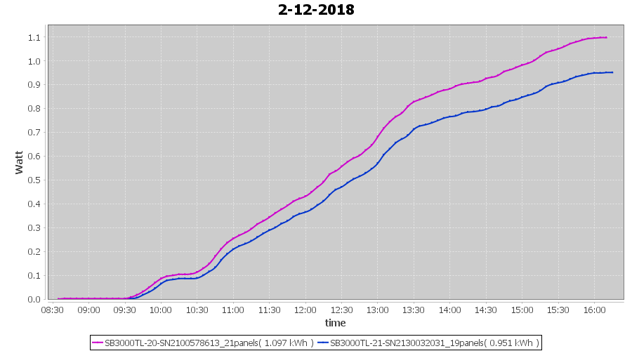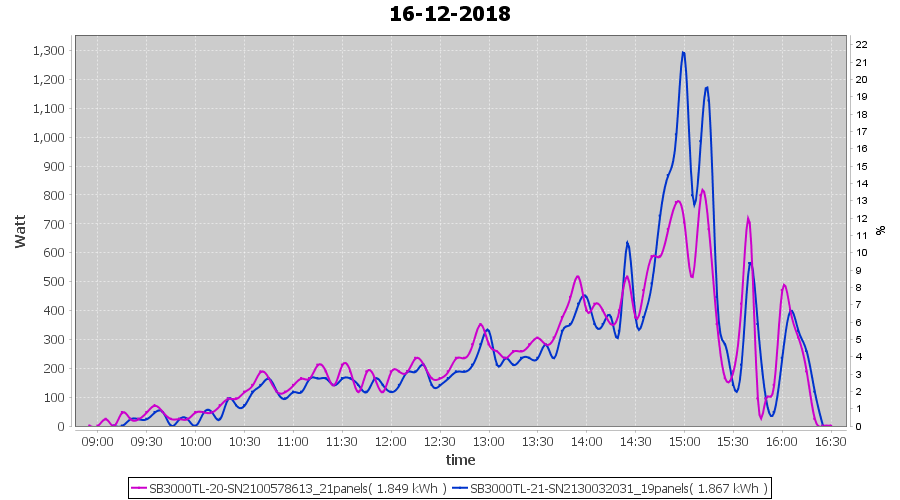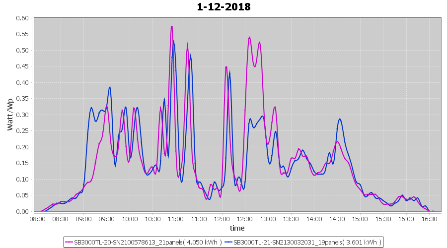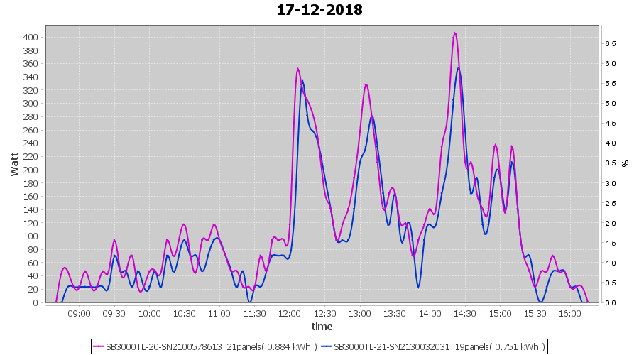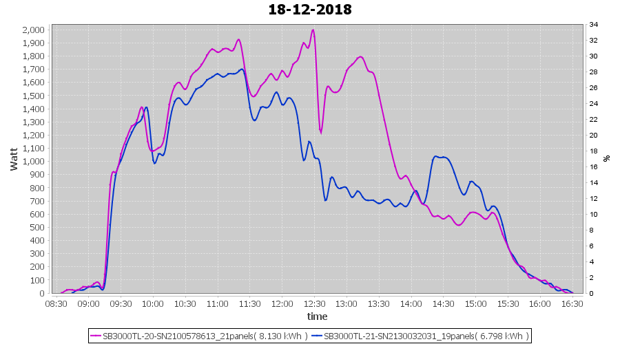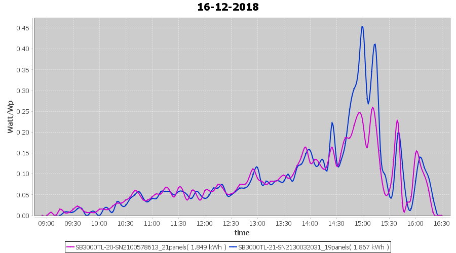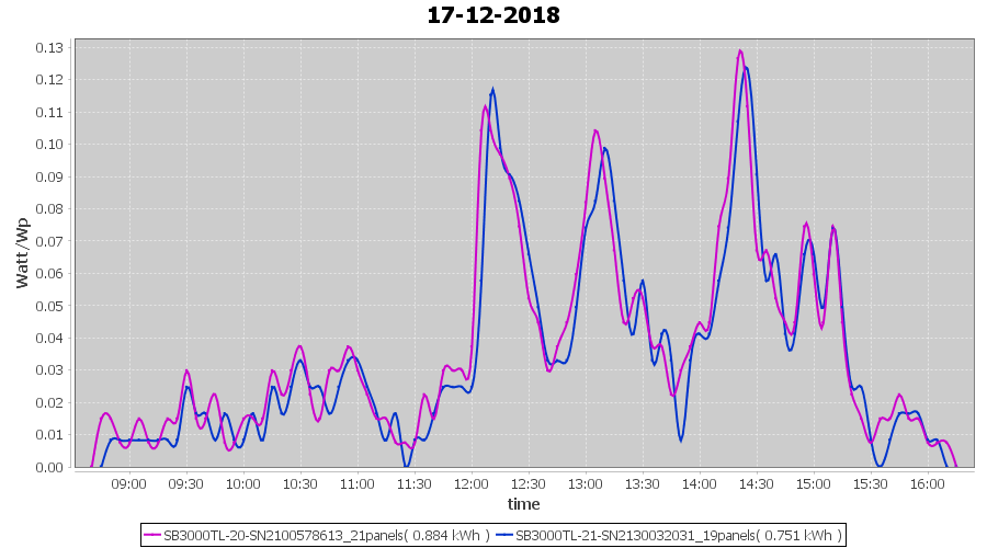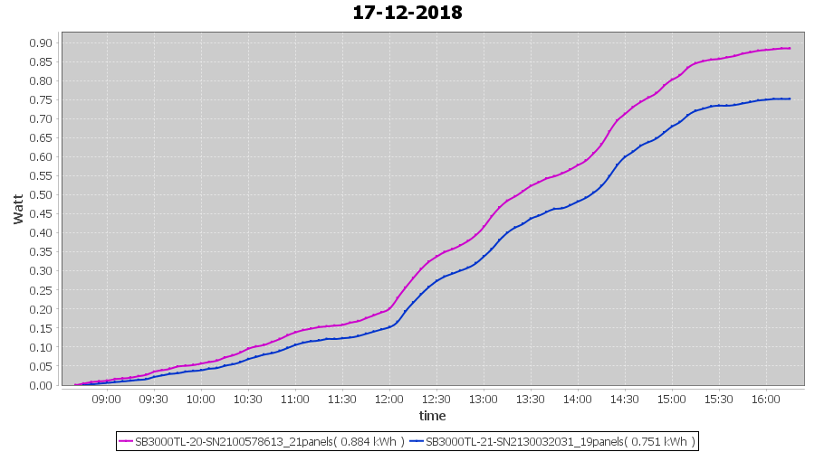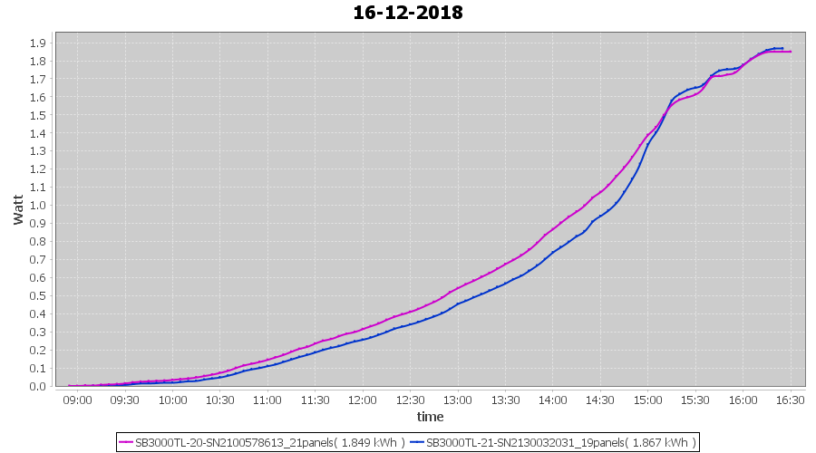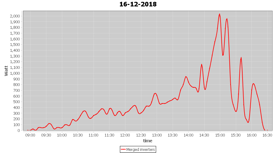 | 16-12-2018 | kWh | Sum | W/Wp | 3.716 | 6000 | 0.6 | 1.719 | € 1.33 | 2.0 |