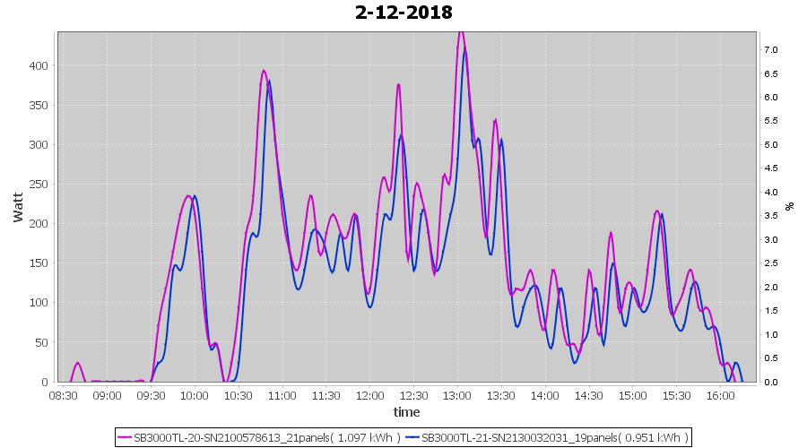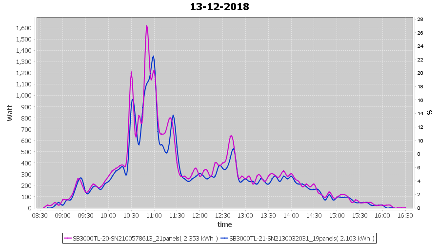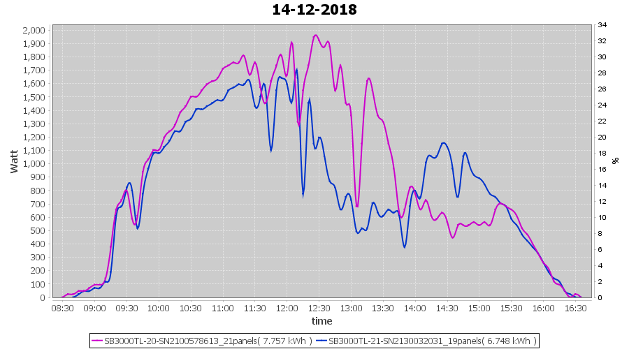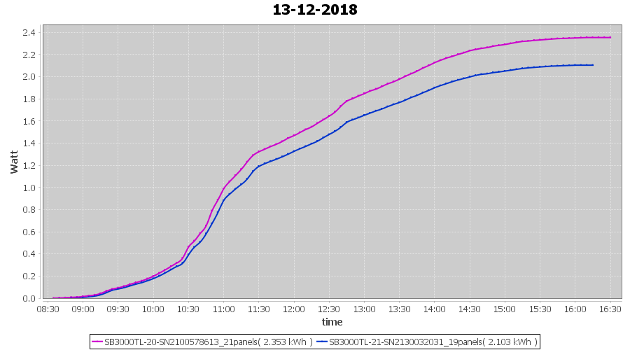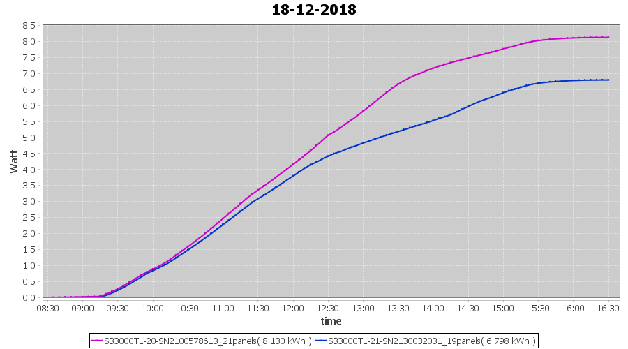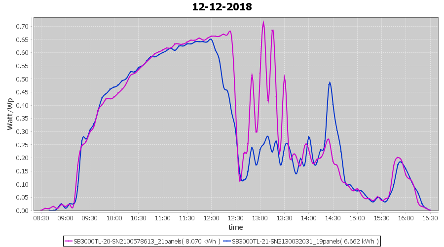 | 12-12-2018 | kWh | Sum | W/Wp | 14.732 | 6000 | 2.5 | 6.814 | € 5.25 | 8.1 |