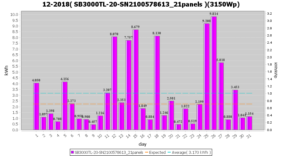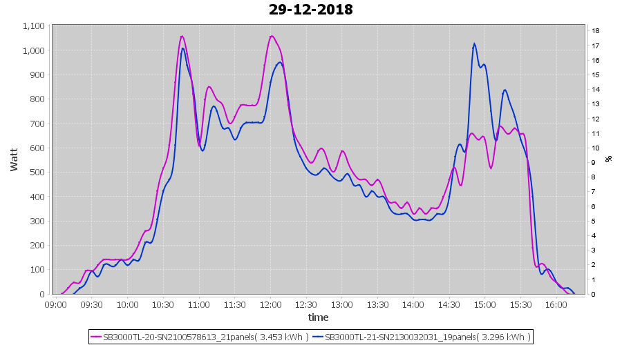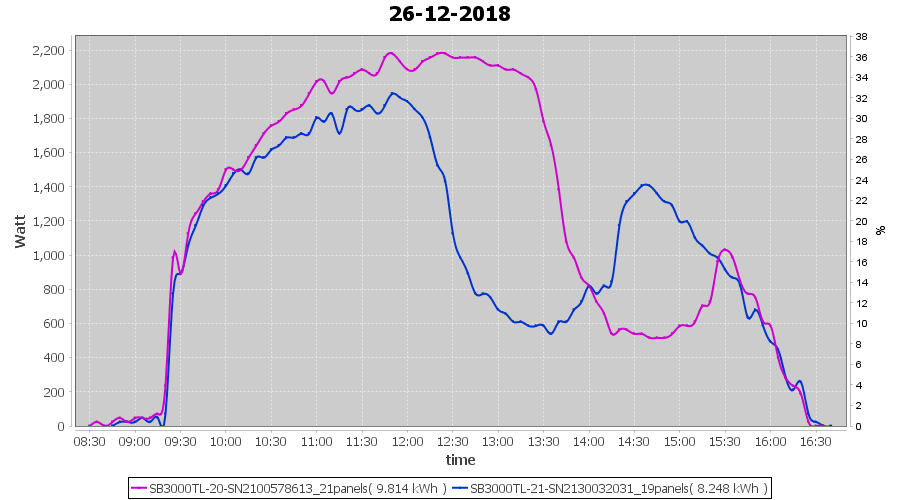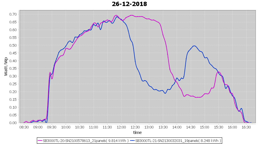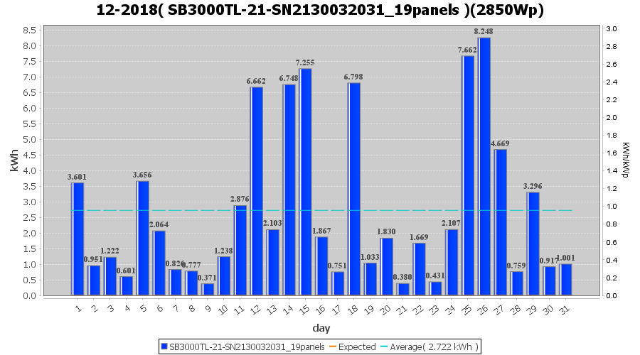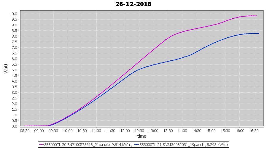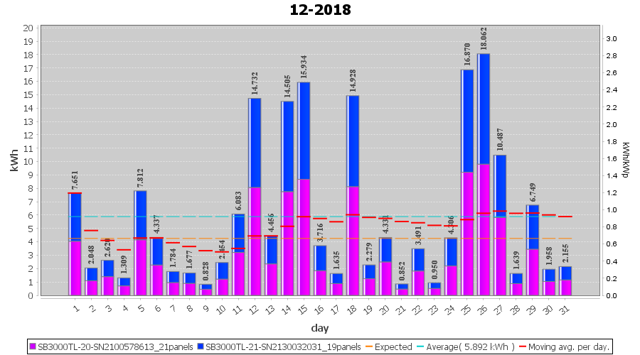 | 26-12-2018 | kWh | Sum | W/Wp | 18.062 | 6000 | 3.0 | 8.354 | € 6.44 | 9.9 |