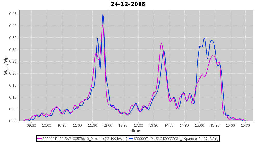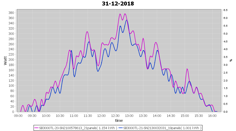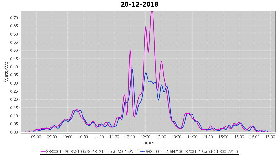 | 20-12-2018 | kWh | Sum | W/Wp | 4.331 | 6000 | 0.7 | 2.003 | € 1.54 | 2.4 |