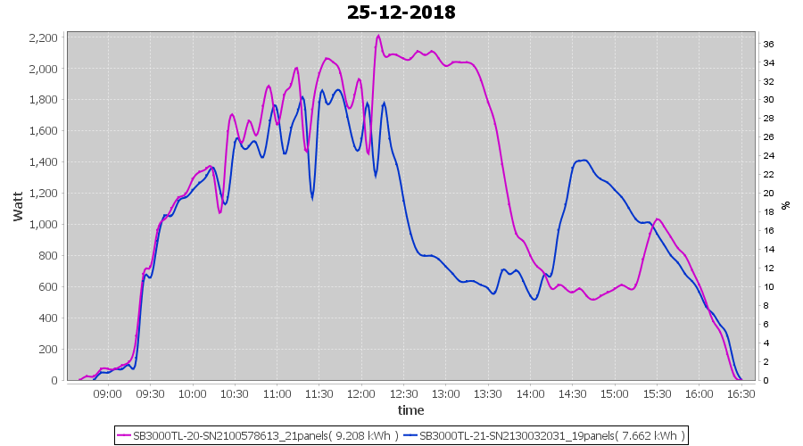 | 25-12-2018 | kWh | Sum | W/Wp | 16.870 | 6000 | 2.8 | 7.802 | € 6.01 | 9.2 |
