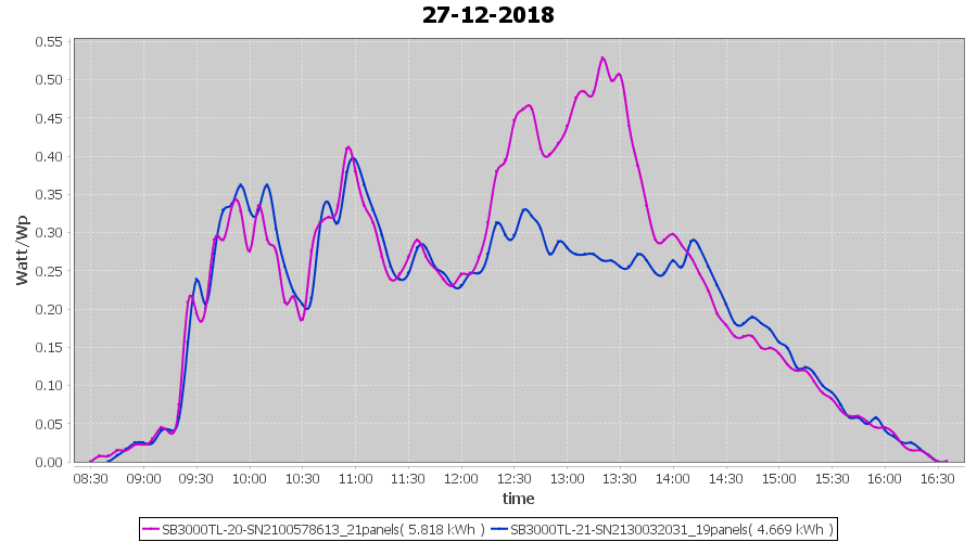 | 27-12-2018 | kWh | Sum | W/Wp | 10.487 | 6000 | 1.7 | 4.850 | € 3.74 | 5.7 |