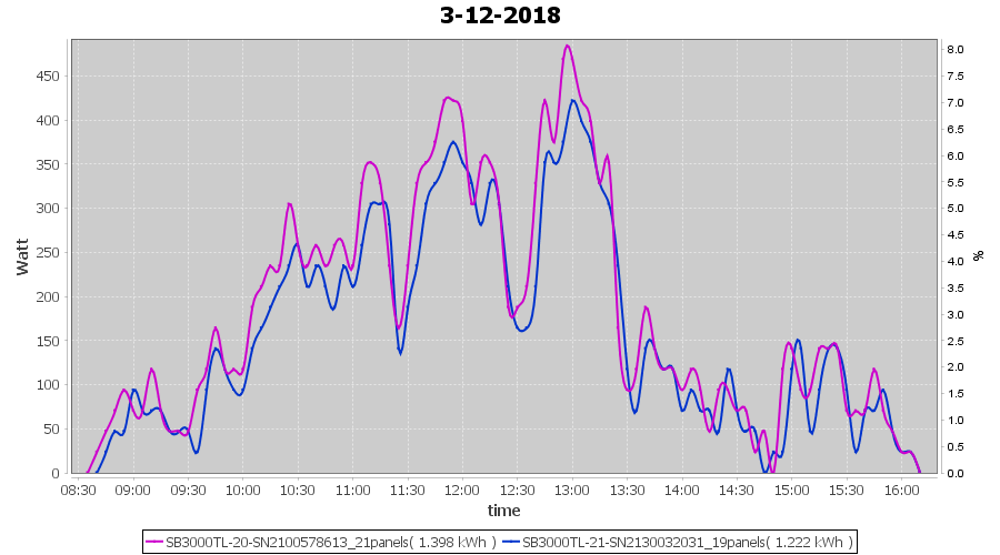 | 3-12-2018 | kWh | Sum | W/Wp | 2.620 | 6000 | 0.4 | 1.212 | € 0.93 | 1.4 |