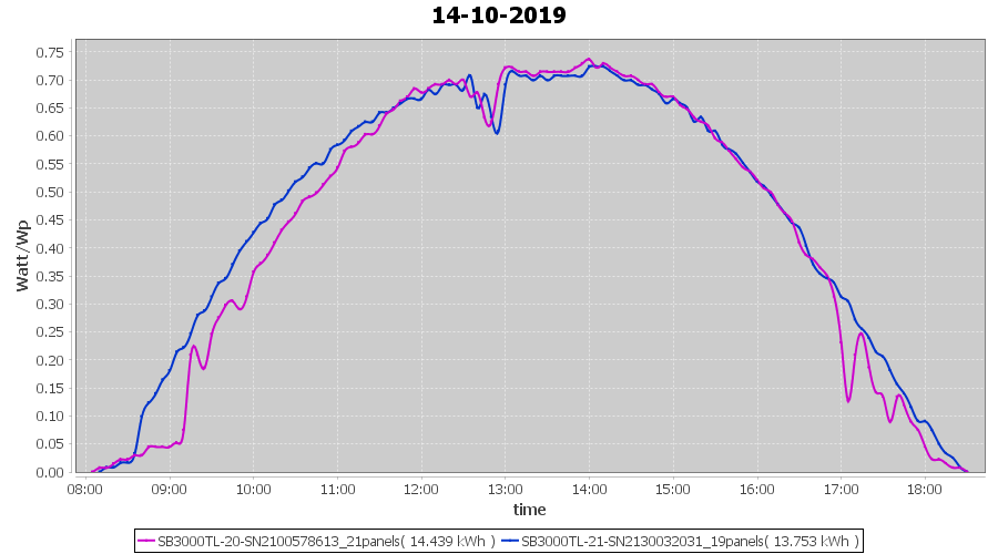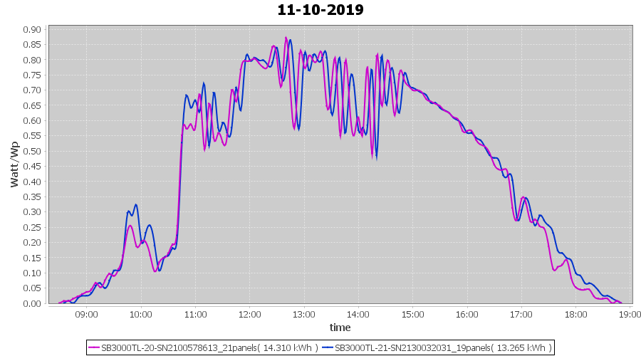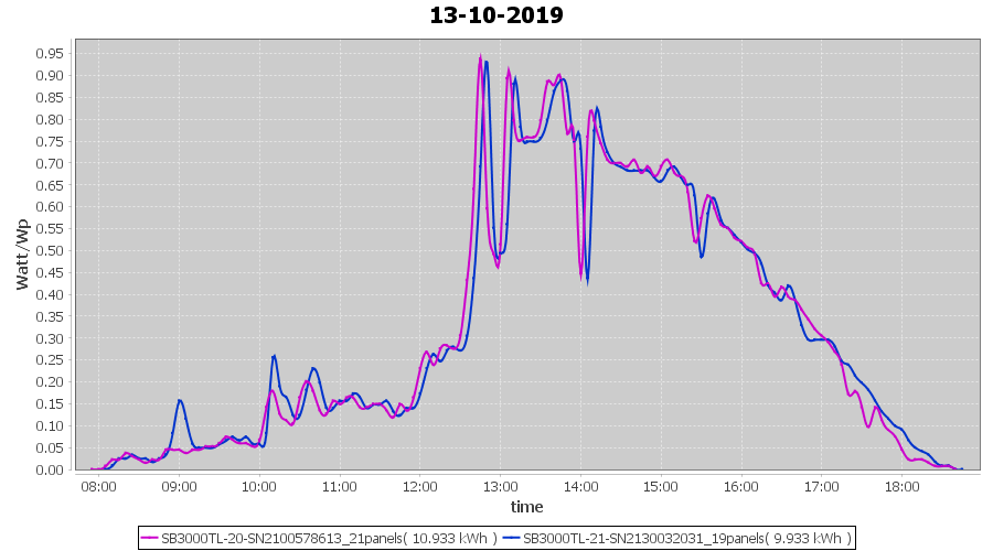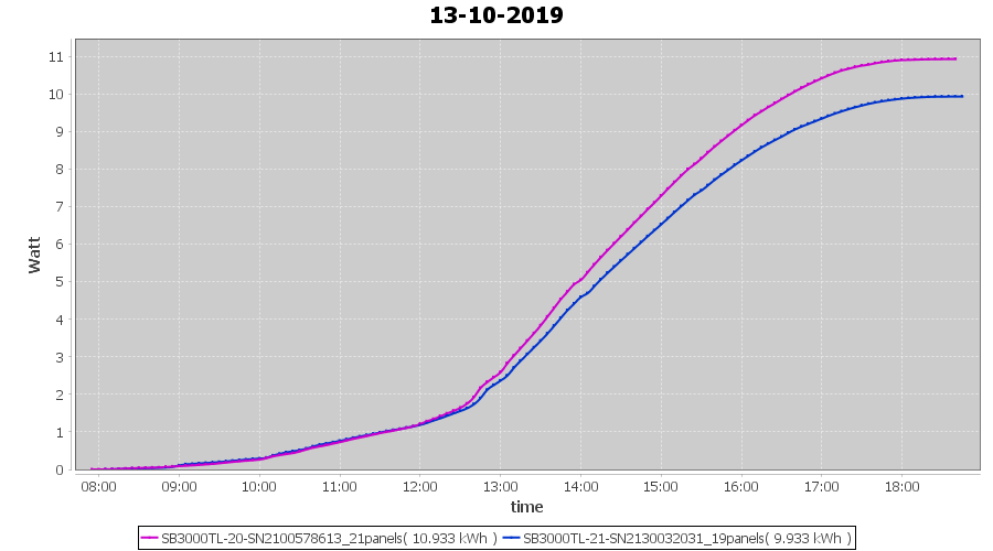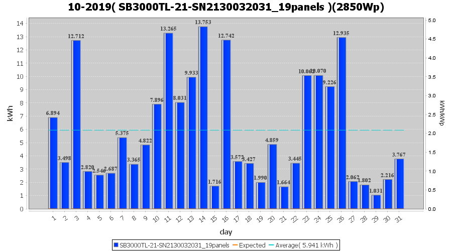 | 13-10-2019 | kWh | Sum | W/Wp | 20.866 | 6000 | 3.5 | 9.651 | € 7.49 | 5.4 |