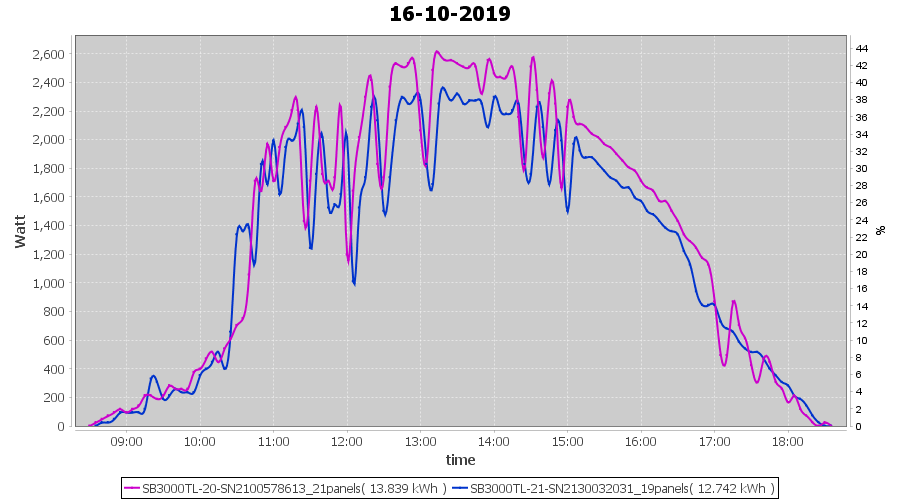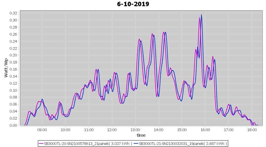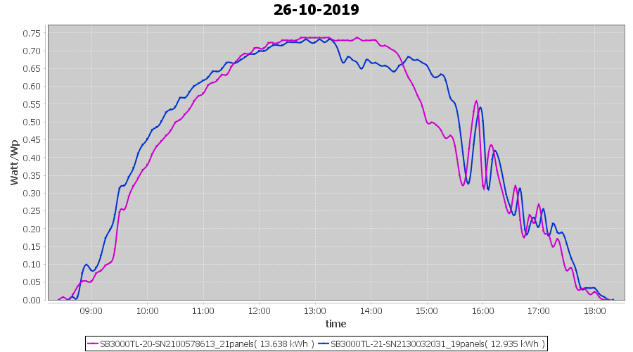 | 16-10-2019 | kWh | Sum | W/Wp | 26.581 | 6000 | 4.4 | 12.294 | € 9.54 | 6.9 |