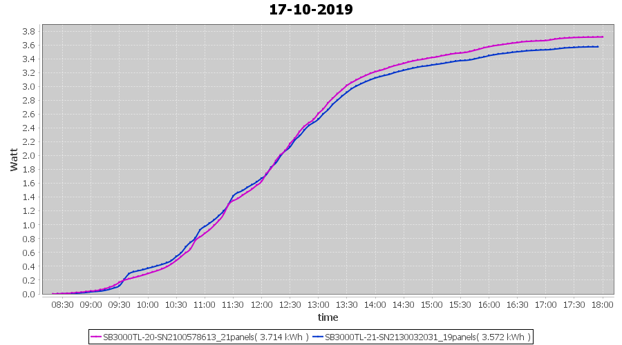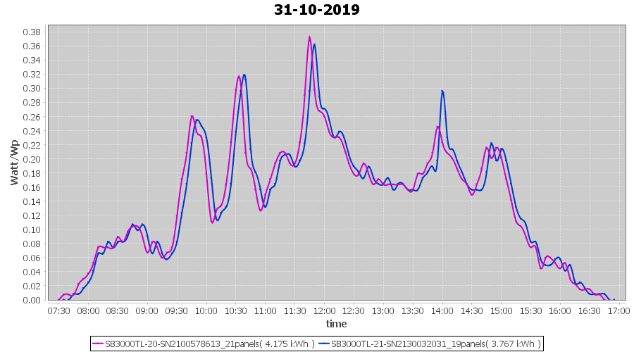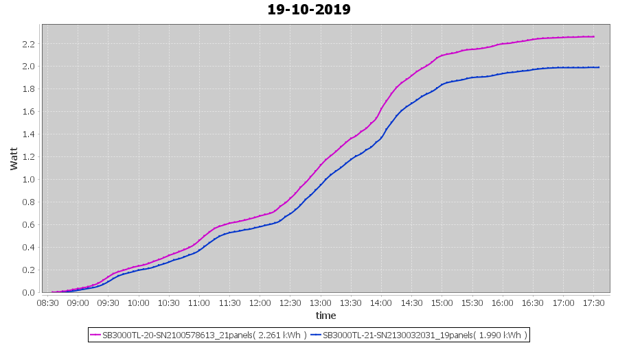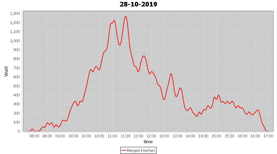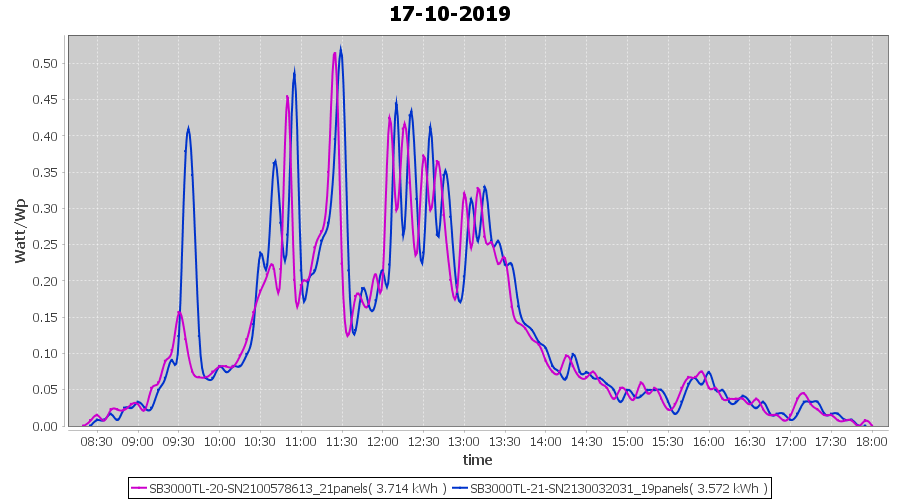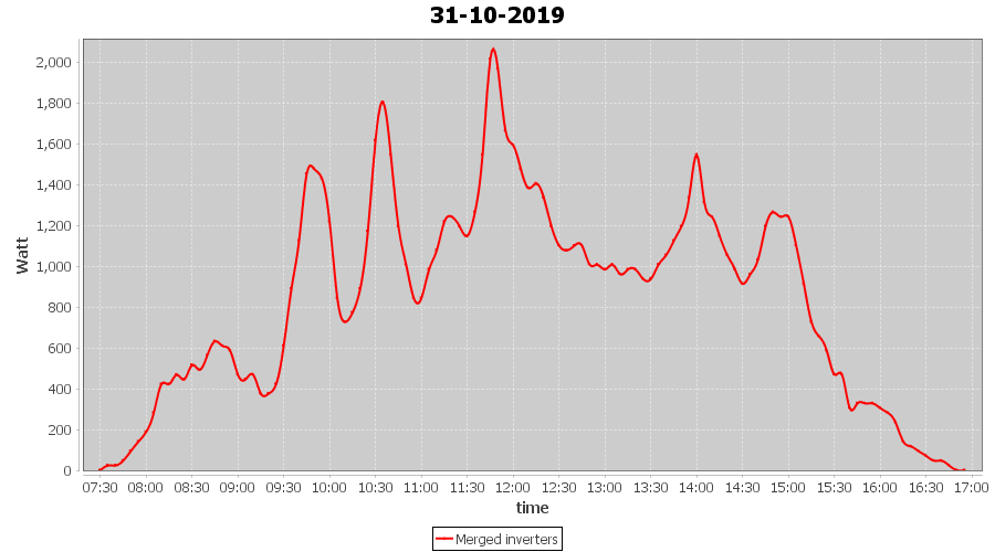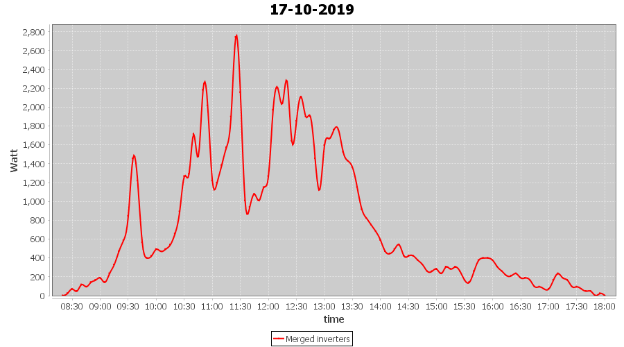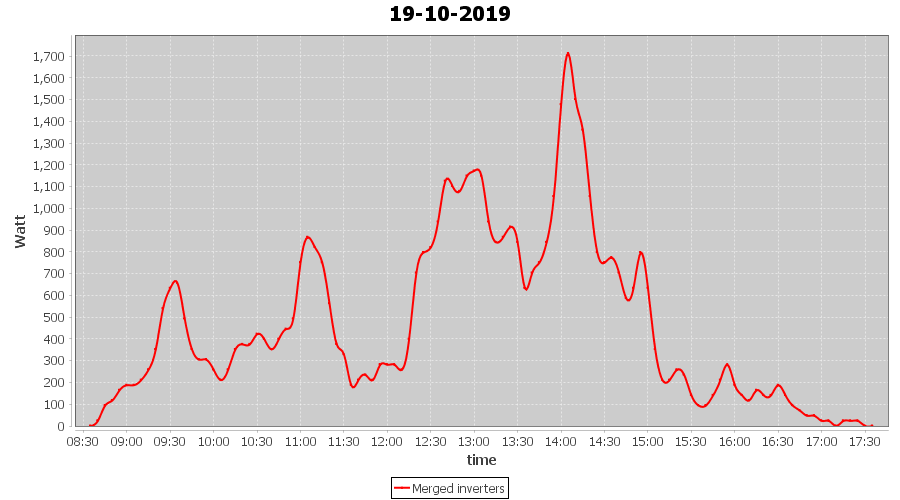 | 17-10-2019 | kWh | Sum | W/Wp | 7.286 | 6000 | 1.2 | 3.370 | € 2.61 | 1.9 |