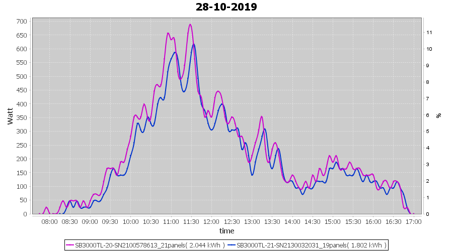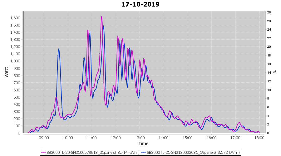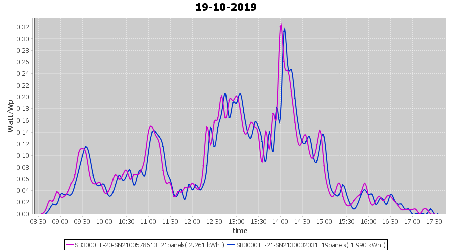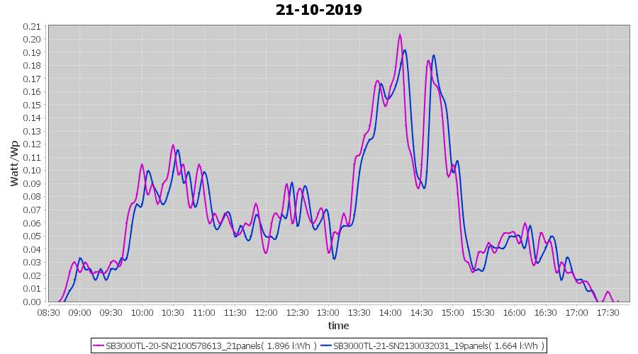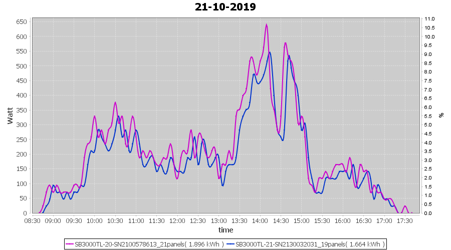 | 21-10-2019 | kWh | Sum | W/Wp | 3.560 | 6000 | 0.6 | 1.646 | € 1.28 | 0.9 |