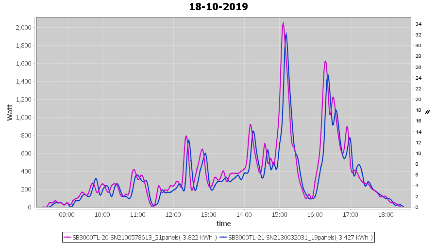 | 18-10-2019 | kWh | Sum | W/Wp | 7.249 | 6000 | 1.2 | 3.353 | € 2.60 | 1.9 |