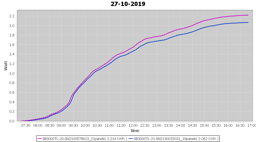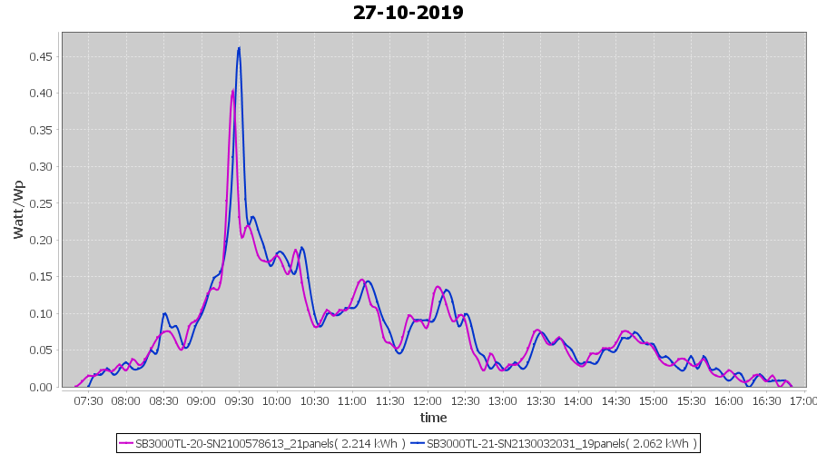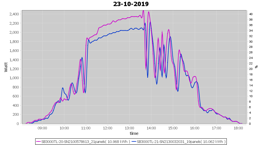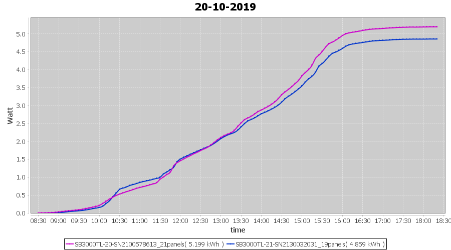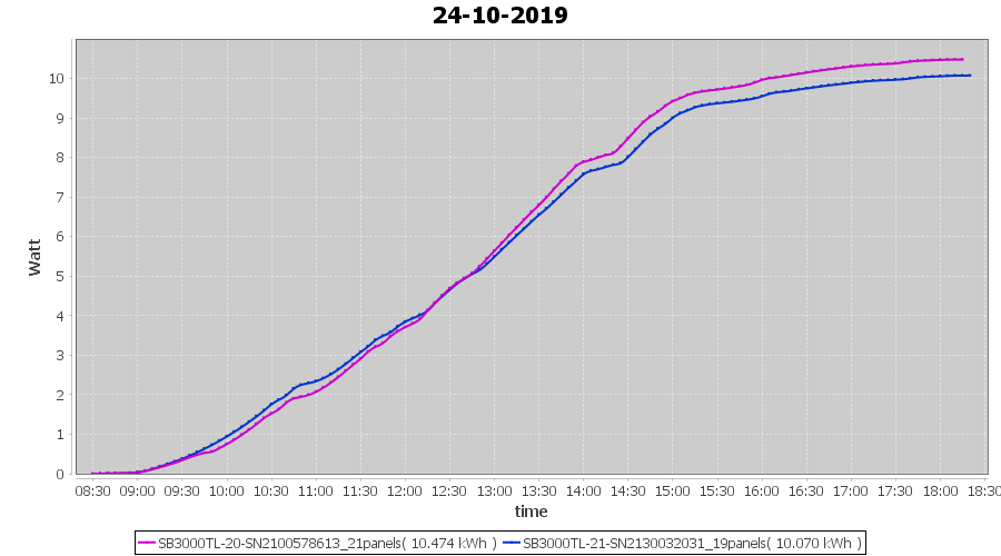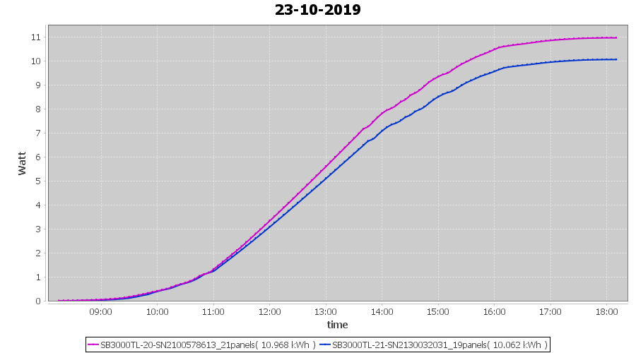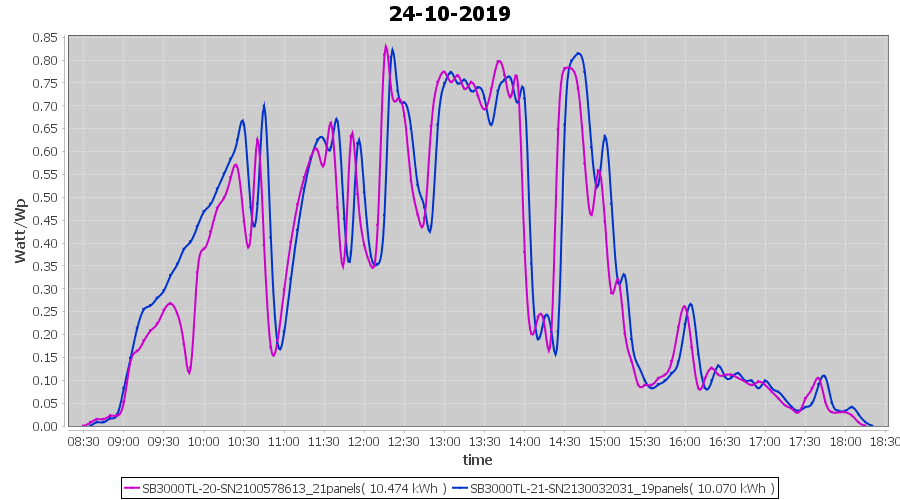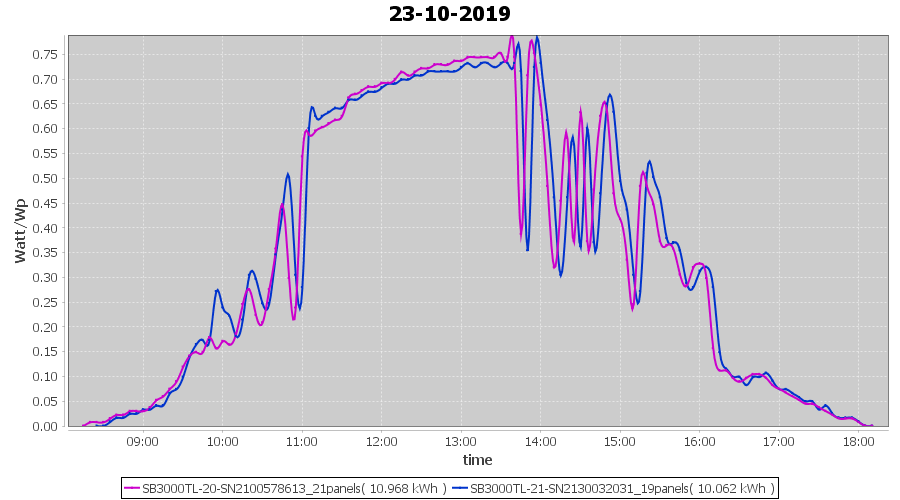 | 23-10-2019 | kWh | Sum | W/Wp | 21.030 | 6000 | 3.5 | 9.726 | € 7.55 | 5.5 |