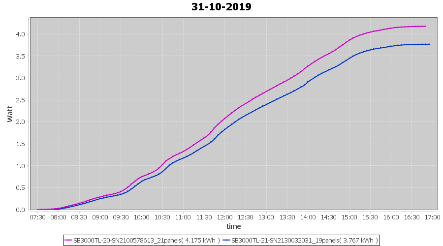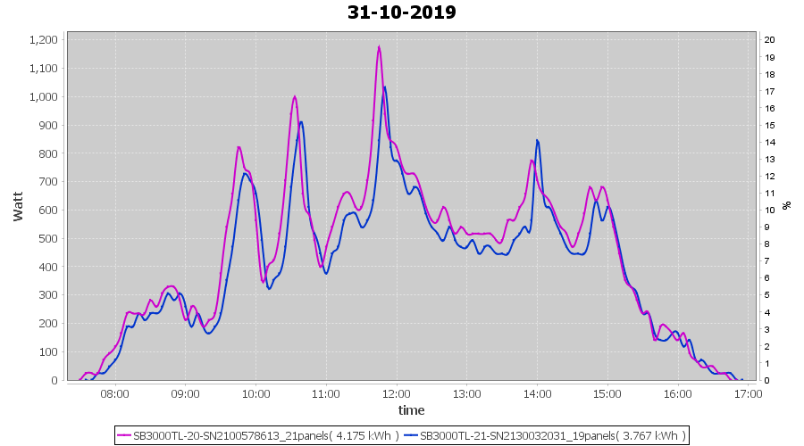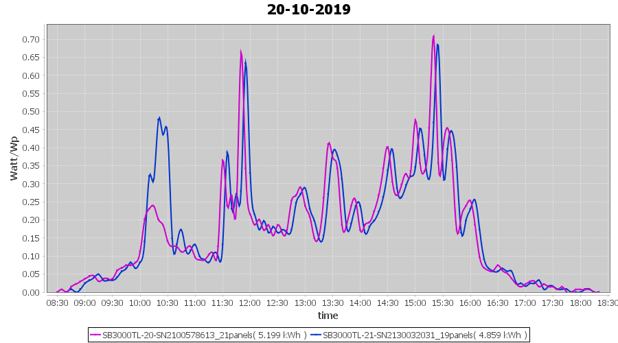 | 19-10-2019 | kWh | Sum | W/Wp | 4.251 | 6000 | 0.7 | 1.966 | € 1.53 | 1.1 |