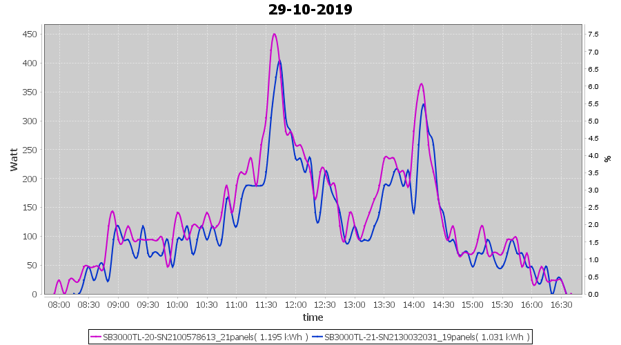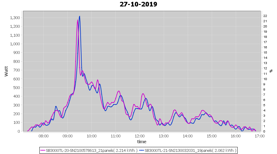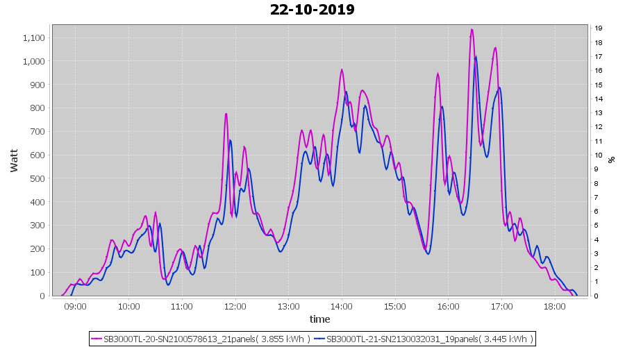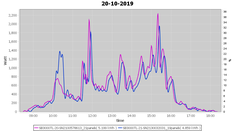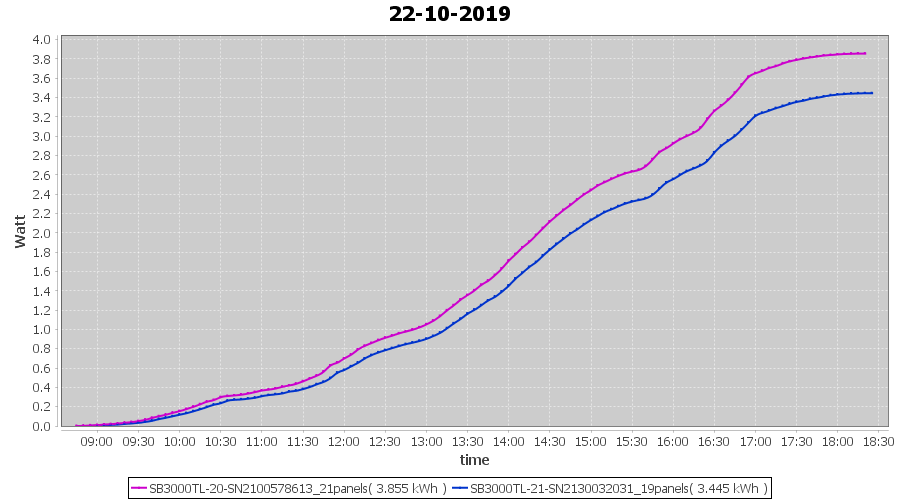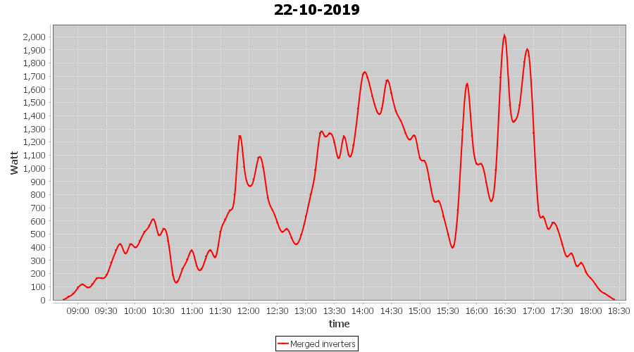 | 22-10-2019 | kWh | Sum | W/Wp | 7.300 | 6000 | 1.2 | 3.376 | € 2.62 | 1.9 |