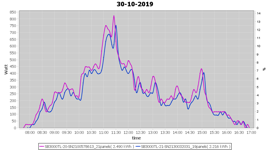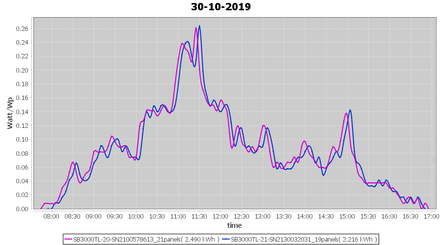 | 30-10-2019 | kWh | Sum | W/Wp | 4.706 | 6000 | 0.8 | 2.177 | € 1.69 | 1.2 |