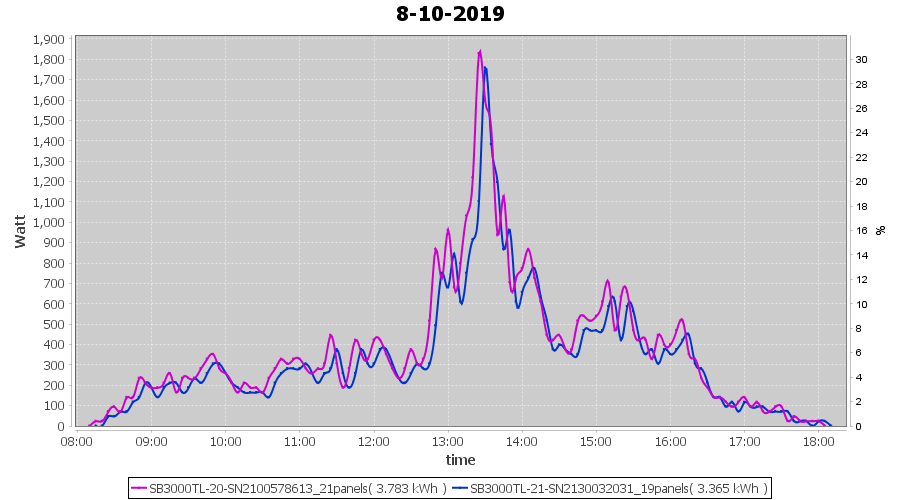 | 8-10-2019 | kWh | Sum | W/Wp | 7.148 | 6000 | 1.2 | 3.306 | € 2.56 | 1.9 |