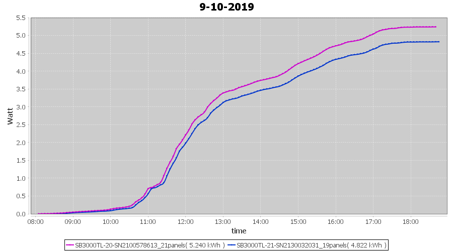 | 5-10-2019 | kWh | Sum | W/Wp | 5.424 | 6000 | 0.9 | 2.509 | € 1.95 | 1.4 |
