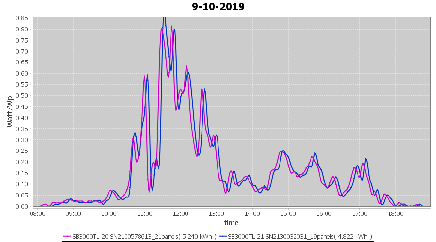 | 9-10-2019 | kWh | Sum | W/Wp | 10.062 | 6000 | 1.7 | 4.654 | € 3.61 | 2.6 |