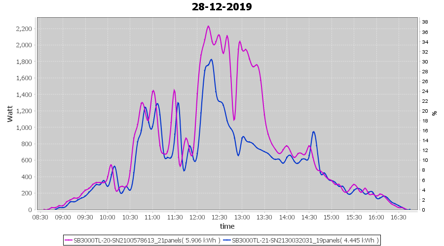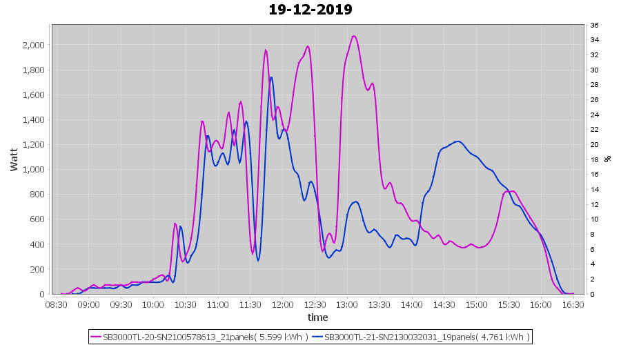 | 18-12-2019 | kWh | Sum | W/Wp | 4.627 | 6000 | 0.8 | 2.140 | € 1.66 | 2.1 |