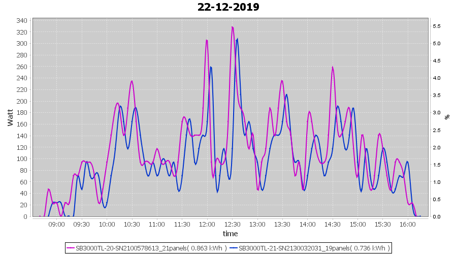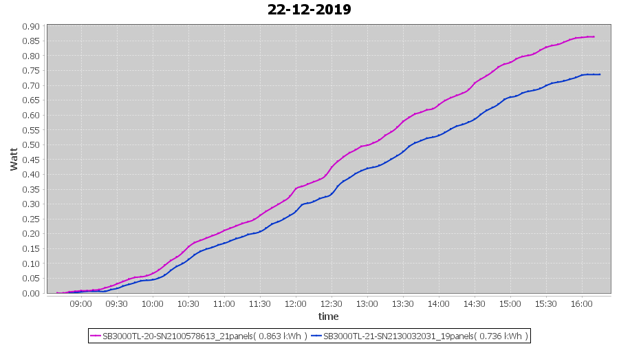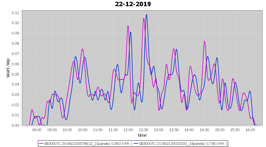 | 22-12-2019 | kWh | Sum | W/Wp | 1.599 | 6000 | 0.3 | 0.740 | € 0.57 | 0.7 |