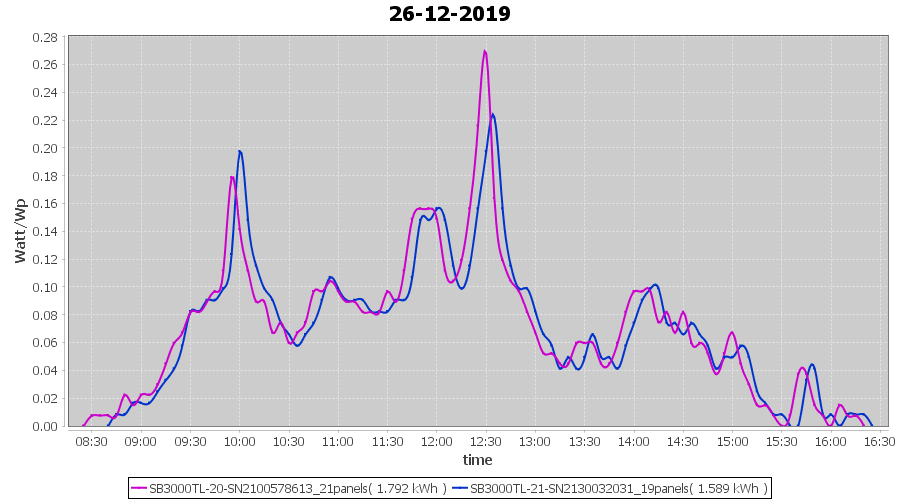 | 26-12-2019 | kWh | Sum | W/Wp | 3.381 | 6000 | 0.6 | 1.564 | € 1.21 | 1.5 |