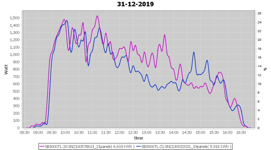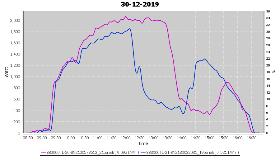 | 30-12-2019 | kWh | Sum | W/Wp | 16.616 | 6000 | 2.8 | 7.685 | € 5.96 | 7.5 |