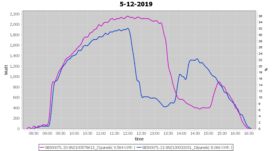 | 5-12-2019 | kWh | Sum | W/Wp | 17.630 | 6000 | 2.9 | 8.154 | € 6.33 | 8.0 |