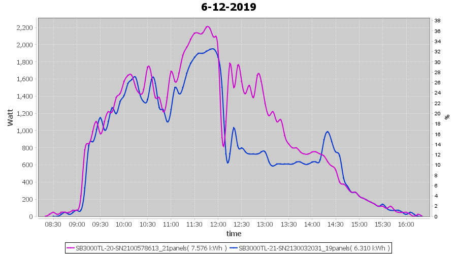 | 6-12-2019 | kWh | Sum | W/Wp | 13.886 | 6000 | 2.3 | 6.422 | € 4.98 | 6.3 |