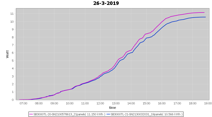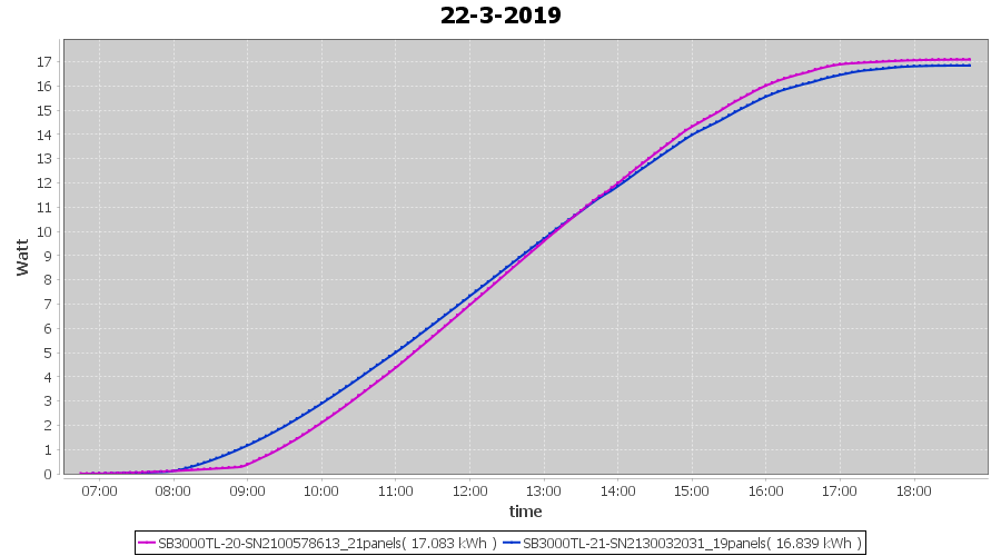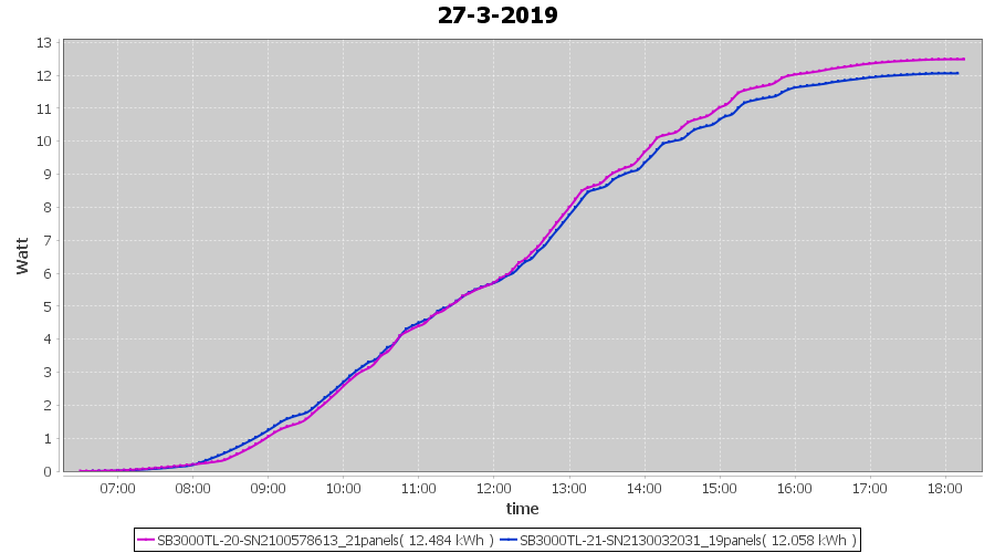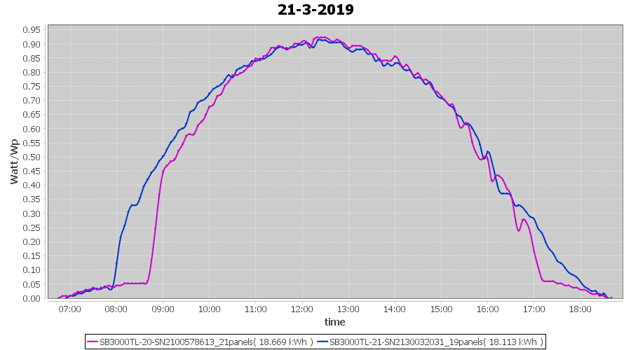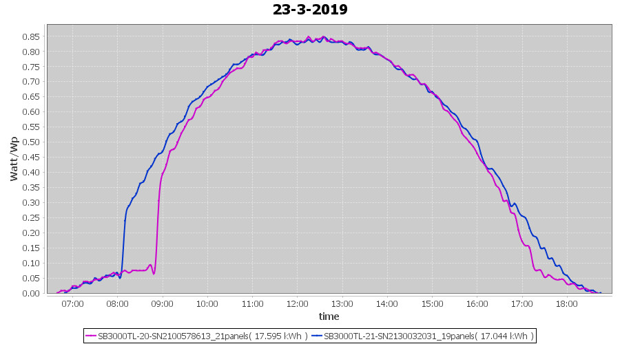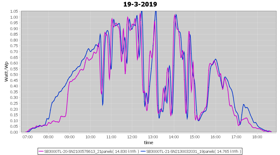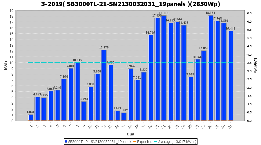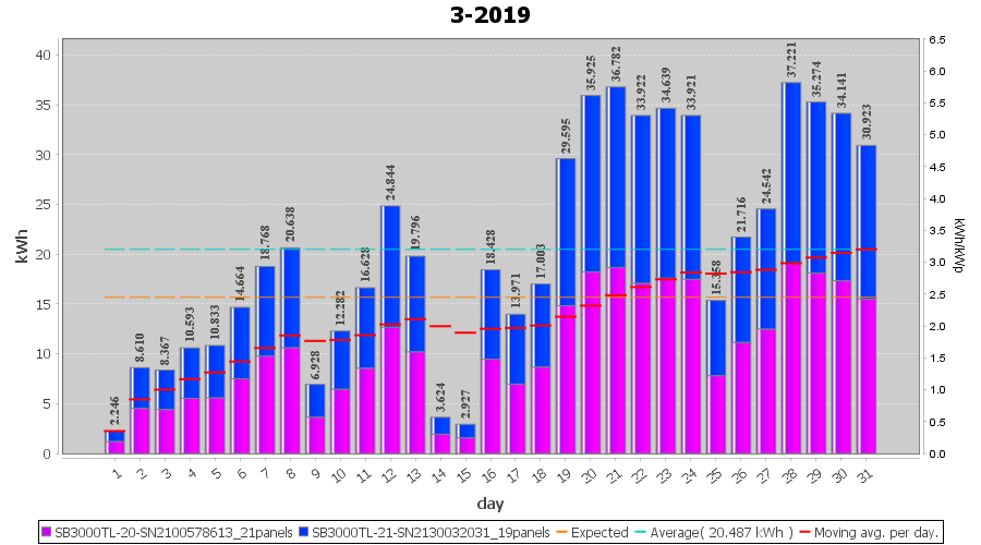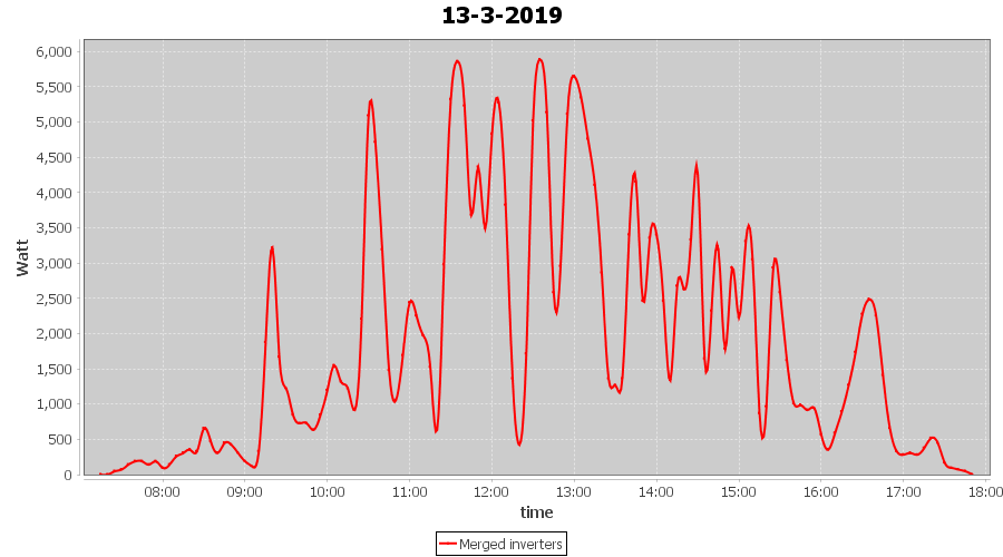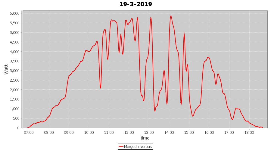 | 21-3-2019 | kWh | Sum | W/Wp | 36.782 | 6000 | 6.1 | 17.012 | € 13.20 | 5.8 |