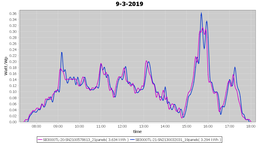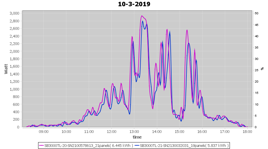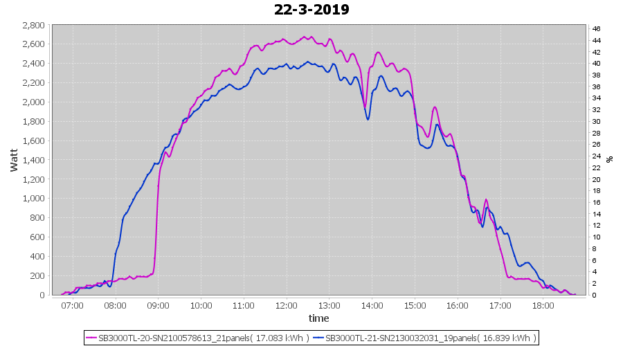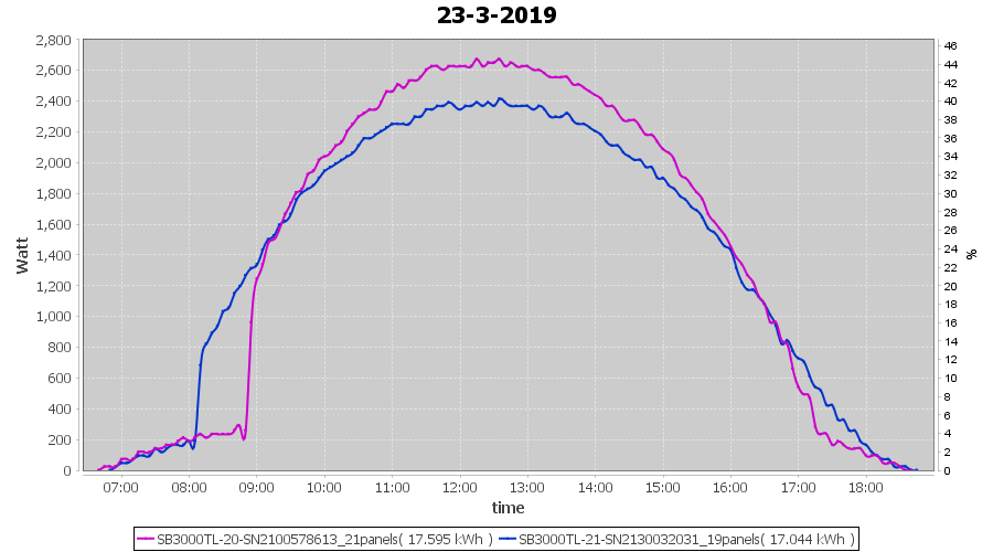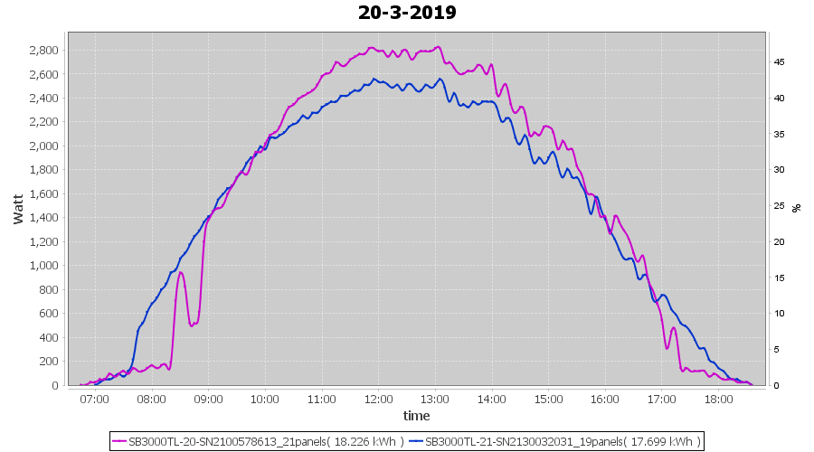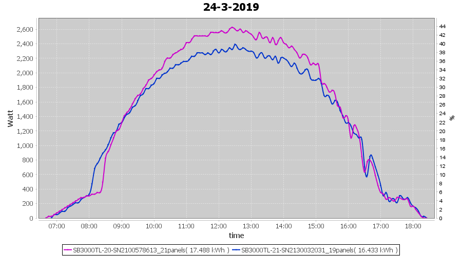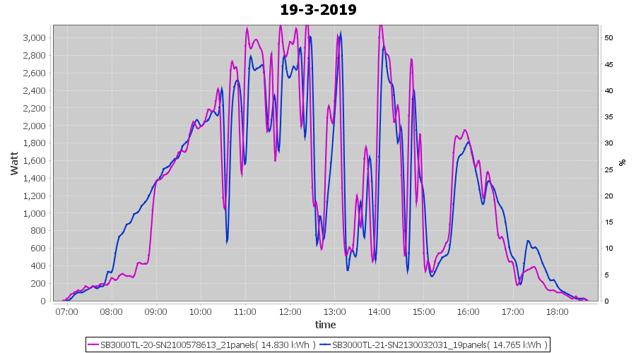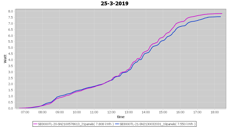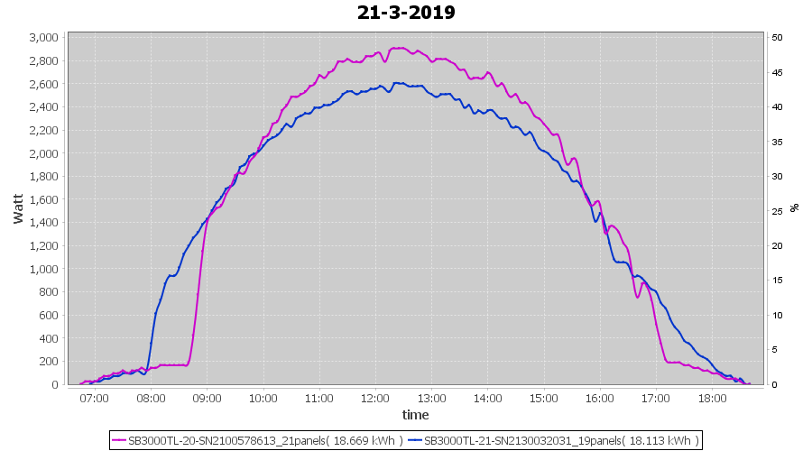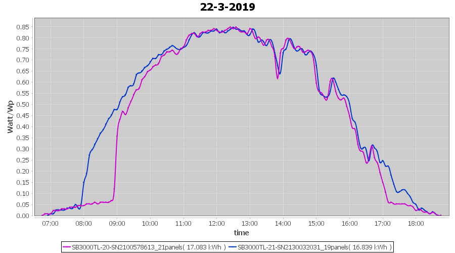 | 21-3-2019 | kWh | Sum | W/Wp | 36.782 | 6000 | 6.1 | 17.012 | € 13.20 | 5.8 |