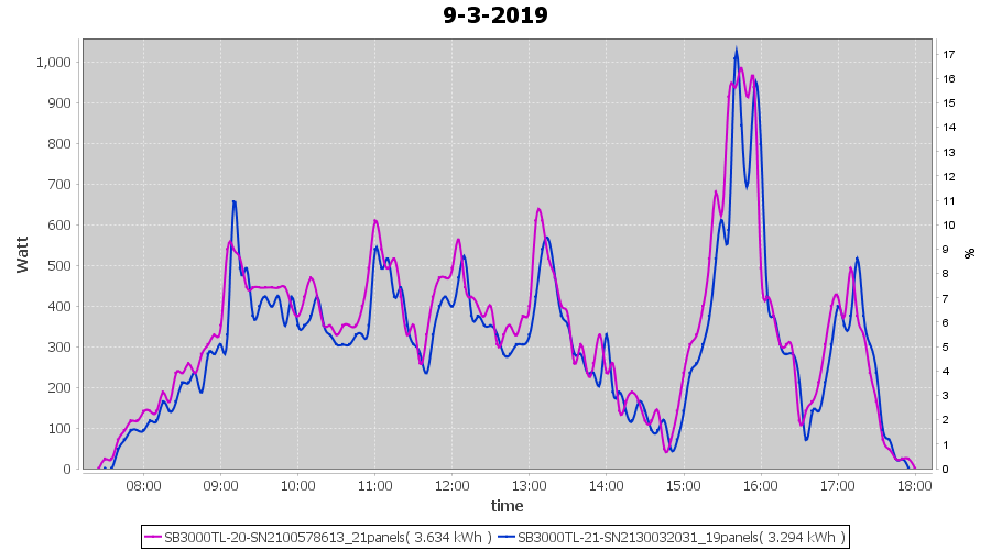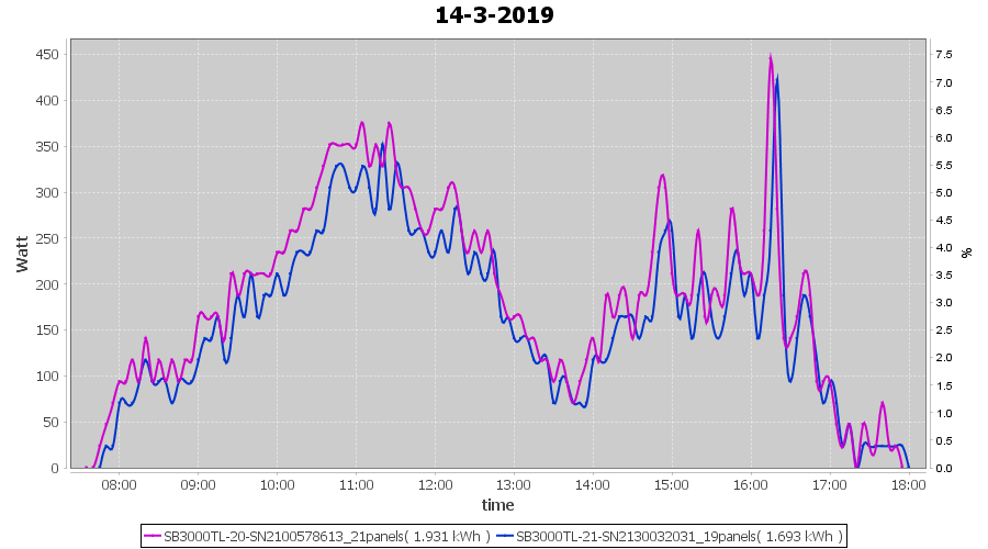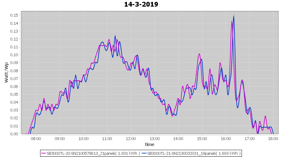 | 14-3-2019 | kWh | Sum | W/Wp | 3.624 | 6000 | 0.6 | 1.676 | € 1.30 | 0.6 |